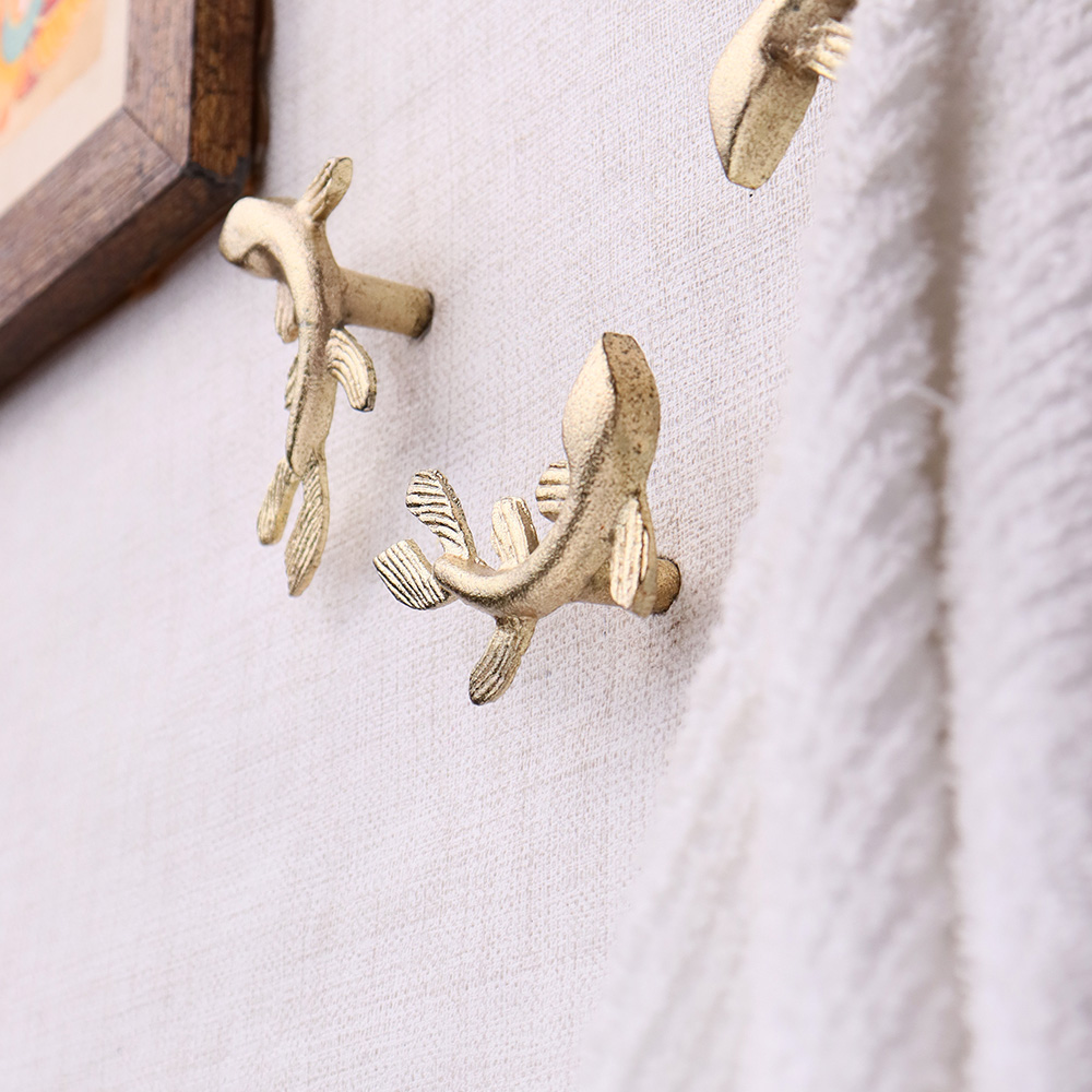 Add a playful yet elegant touch to your space with the Golden Dolphin-Shaped Iron Wall Hooks – Pack of 3. These wall hooks are expertly crafted from solid iron and shaped like graceful dolphins, finished in a radiant gold tone. Designed to bring the charm of the ocean into your home, they combine whimsical design with practical everyday use. Whether placed in a coastal-themed room or used as a decorative twist in modern interiors, these dolphin wall hooks are equal parts art and function.