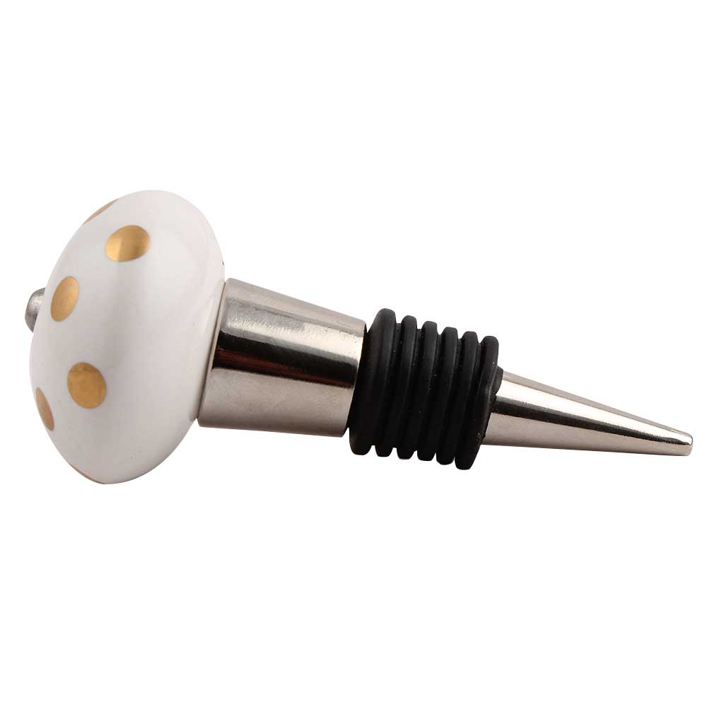 Golden Dot Ceramic Wine Stopper.zinc alloy wine bottle stopper with attractive Jute Bag Packaging.