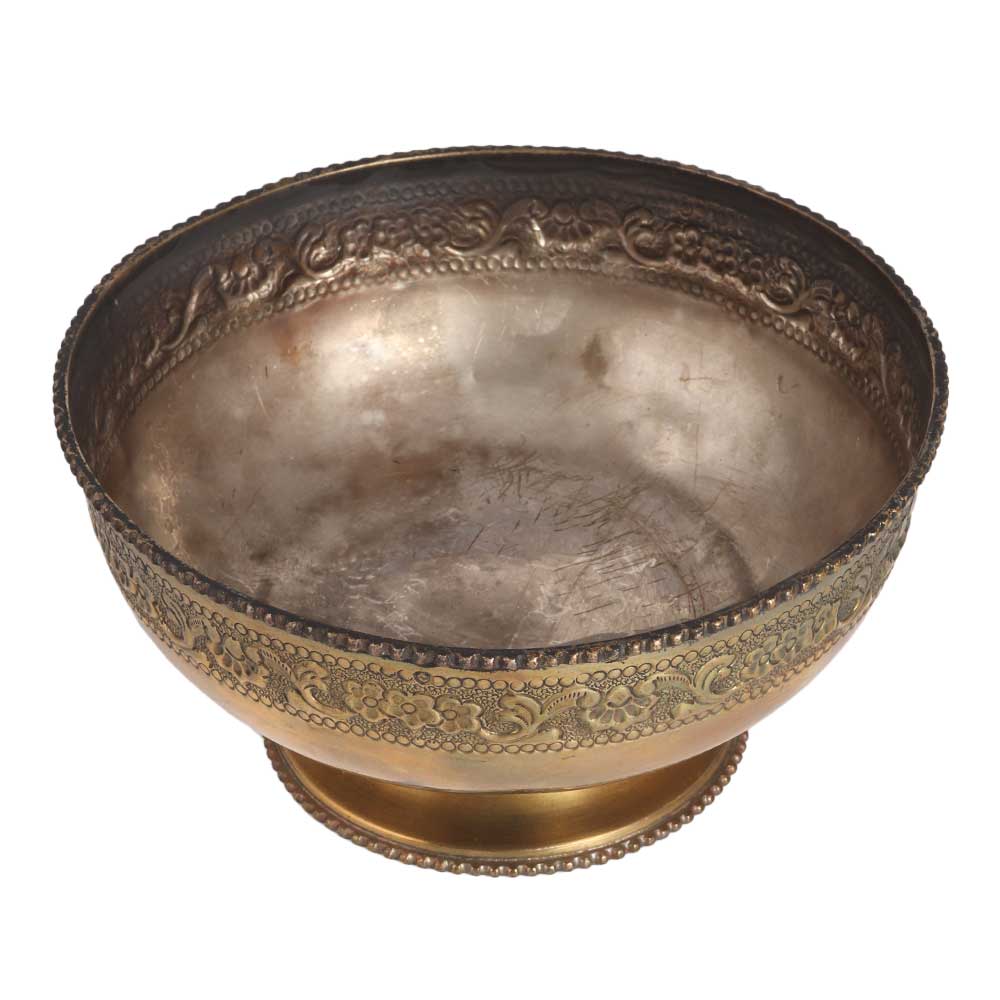 A brass bowl with stand in gold finish with beautiful floral engraving. It has a very attractive look that will ensure that it becomes the focal point in the exhibition or in your vintage art collection. Buy this brass bowl online, handmade by highly skilled Indian artisans using ancient methods. This bowl was used to decorate the dining table by using it as a fruit bowl. The incredible design and golden finish will suit all types of interiors and add an aesthetic flair to the decoration. You can place this brass bowl in your restaurant, cafe or hotel to attract your customers. A perfect gift for special, festive and auspicious occasions for your family, friends and relatives.
