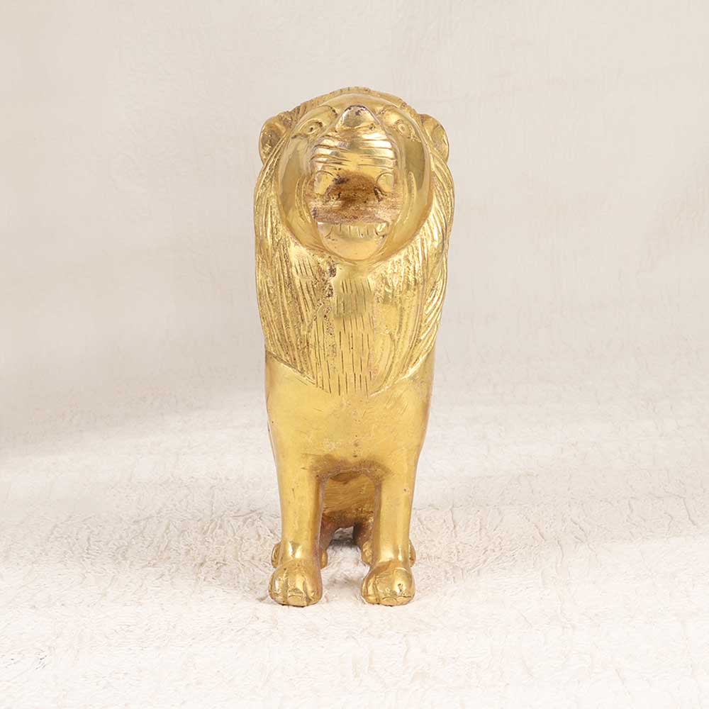 Your heart will roar with delight when you add this majestic brass lion statue to your home decor. This gorgeous vintage-style lion features a regal seated pose with its head held high in a timeless symbol of courage and strength. This brass lion statue is ideal for anyone looking to add a touch of bravery to their home. Place it on your mantle, bookshelf, or tabletop to inspire confidence and fearlessness. The golden lion will become a beloved conversation piece for guests. Give your home a kingly upgrade with this beautiful brass lion today!