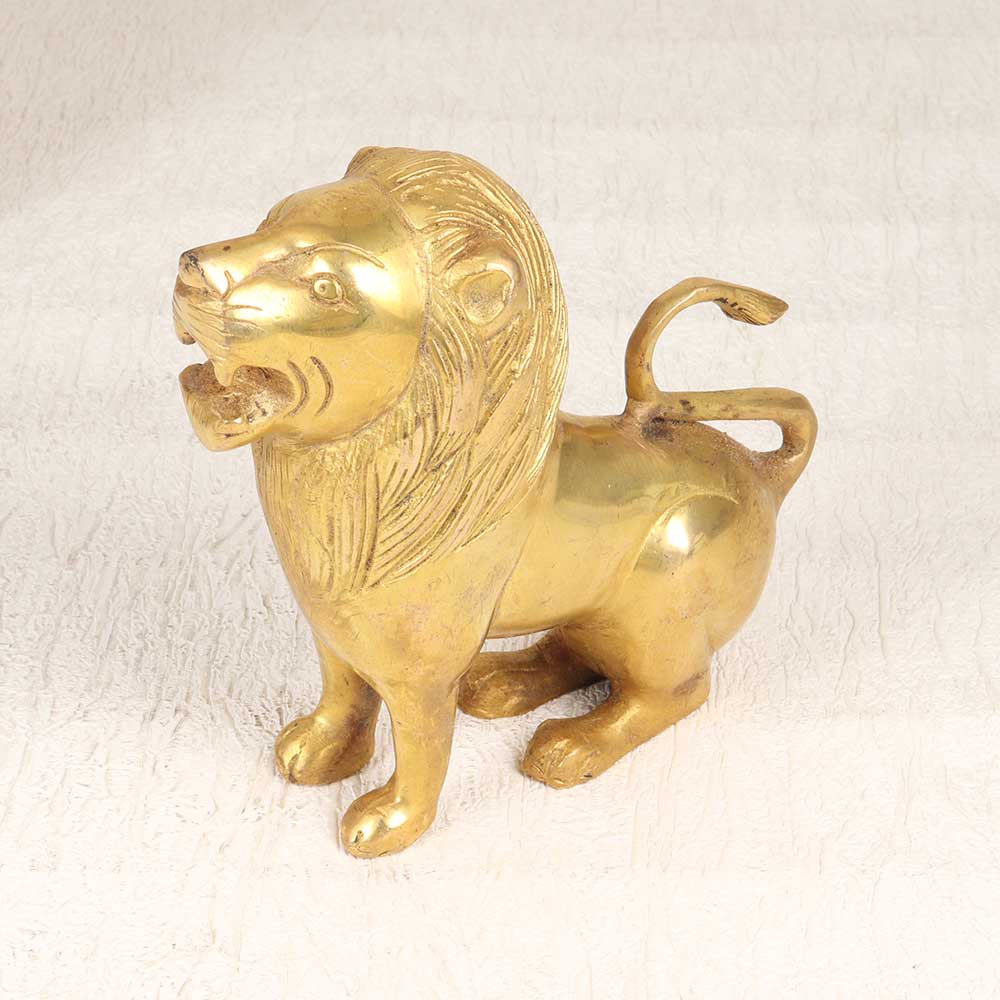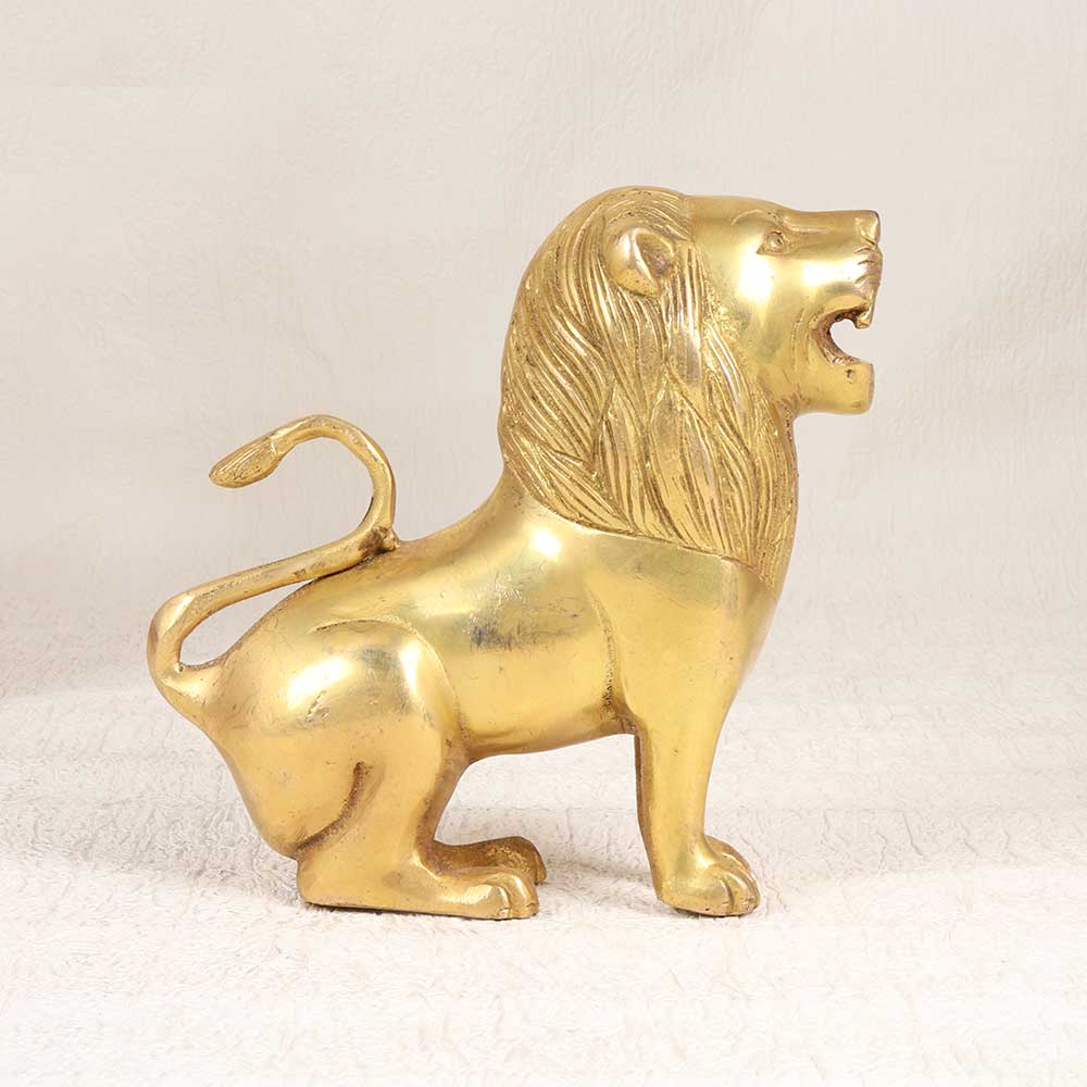 • Golden Finish Brass Lion Statue for Home Decoration and Collection