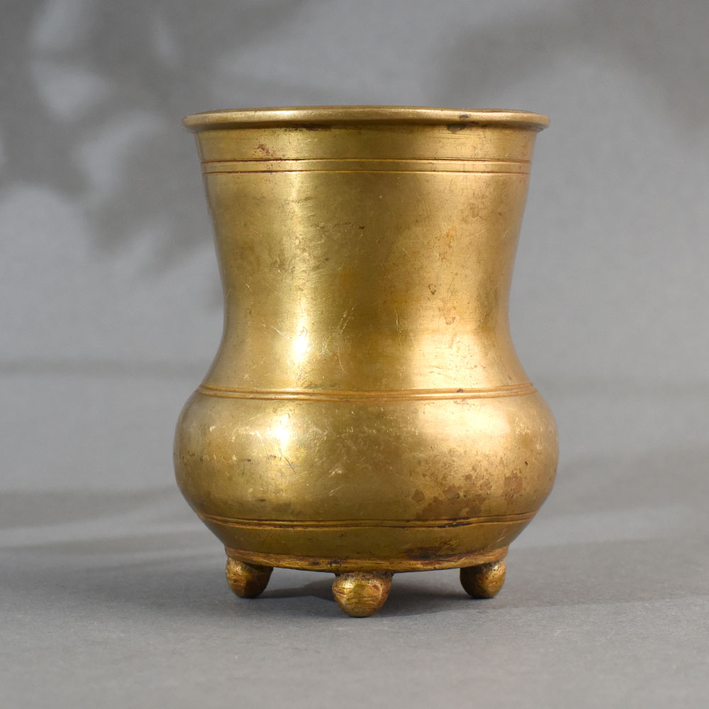 - Unique Design: Bulbous body with flared rim and rare tripod feet for elevation and stability.
