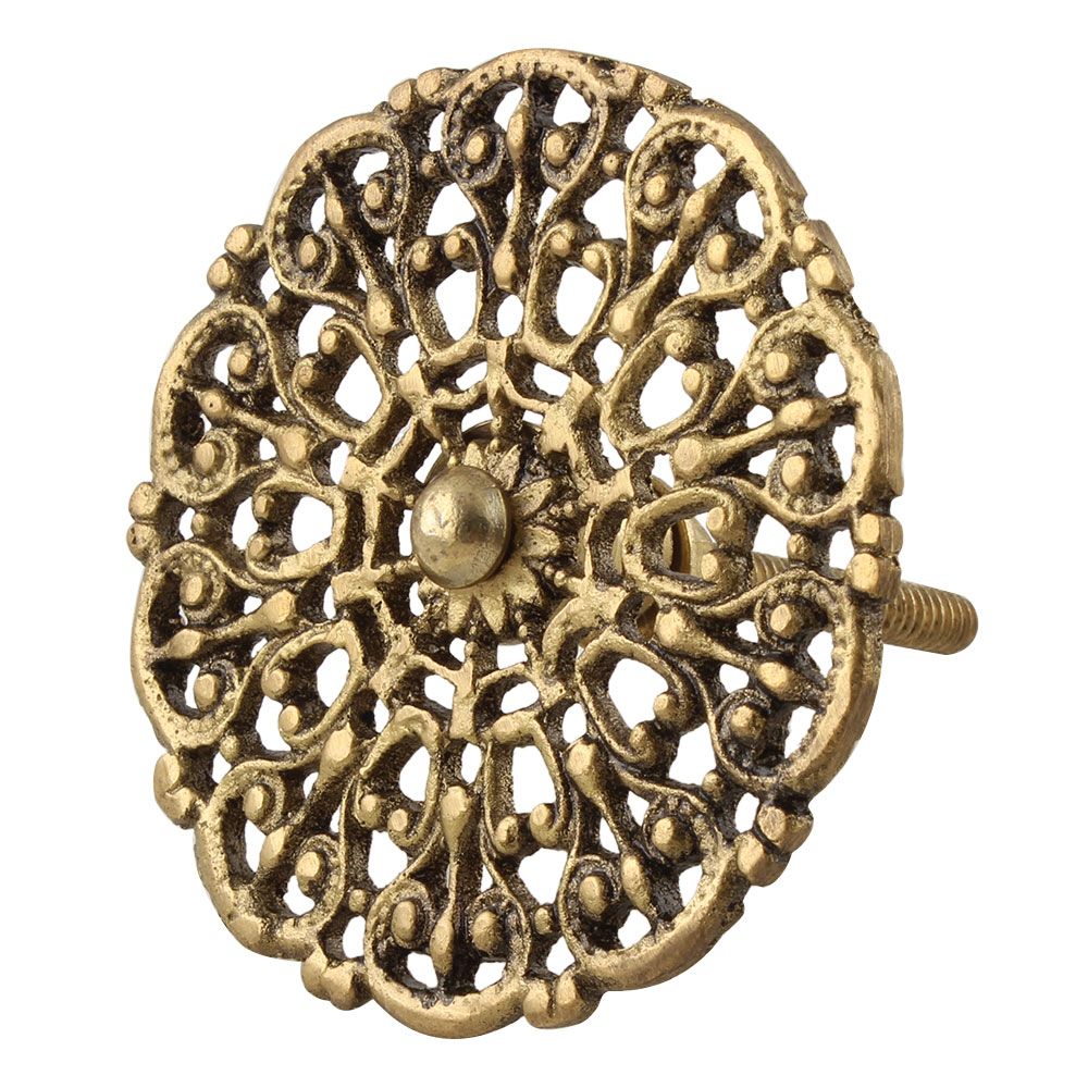 The Golden Floral Brass Dresser Knobs boast an elegant floral pattern that enhances the texture and depth of each knob. The gold finish accentuates the detailed design, making it a captivating decorative element that suits a range of interior styles, from classic to contemporary.