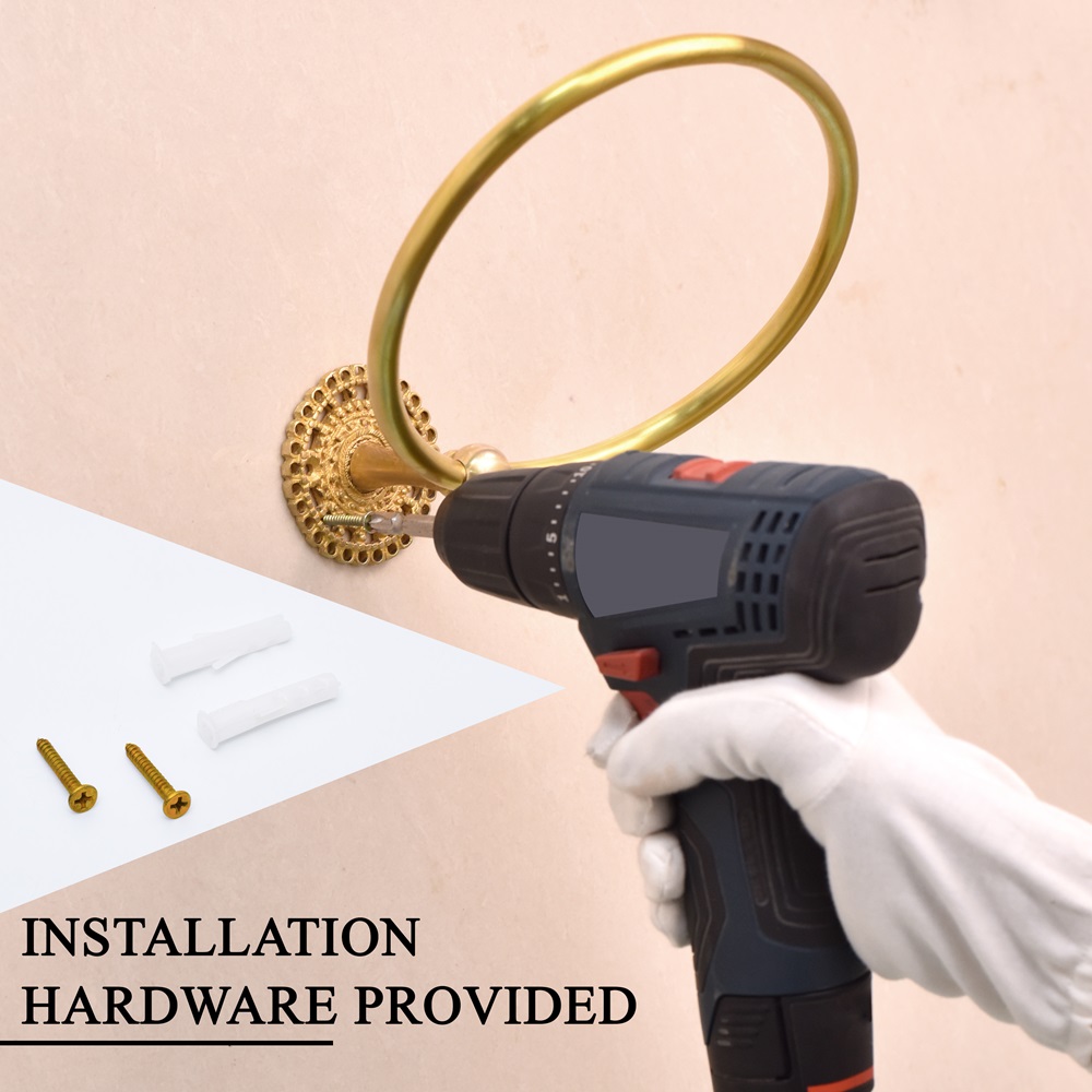 Introduce timeless elegance to your bathroom or powder room with the Golden Floral Brass Towel Ring Holder. Handcrafted from pure brass and finished in a radiant golden hue, this towel ring features intricate floral detailing that elevates your space beyond the ordinary. The design combines practical functionality with decorative charm, bringing both beauty and utility to your walls. Whether you're refreshing your decor or completing a vintage-inspired setting, this towel holder adds the perfect finishing touch.