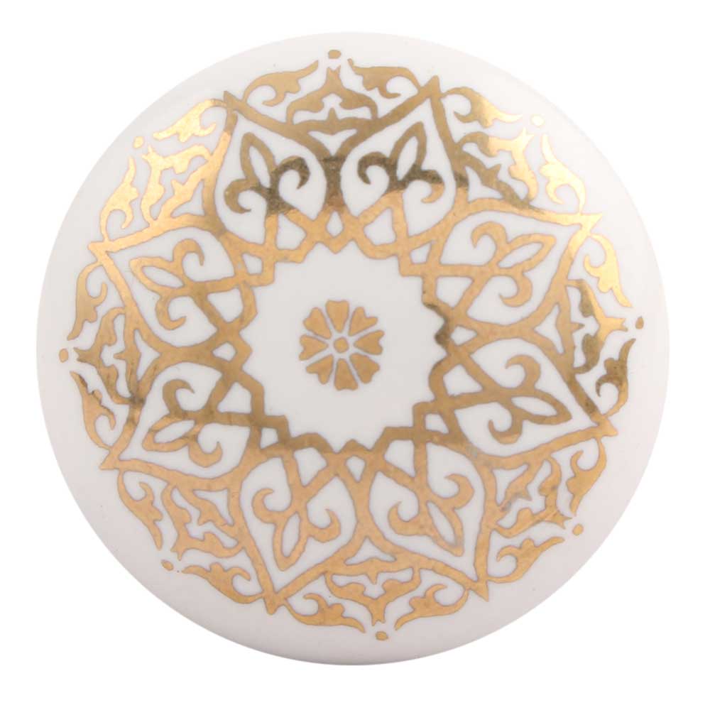 Golden Floral Pattern Flat Ceramic Cabinet Knob
