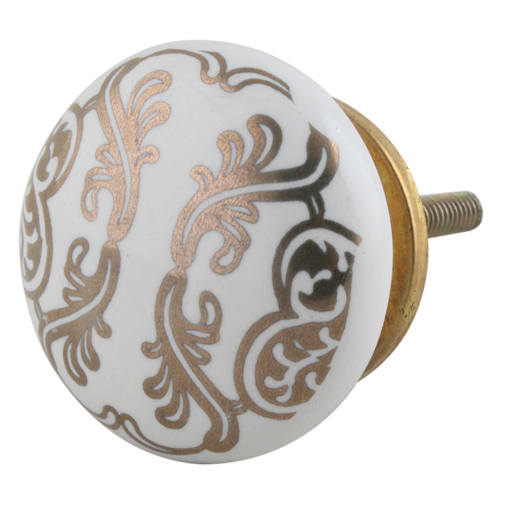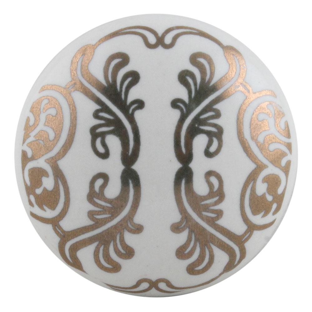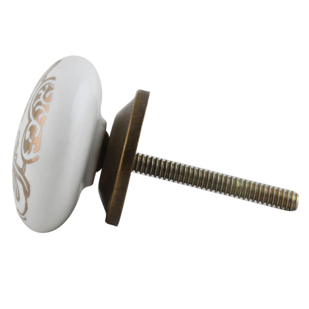 Golden Floral Pattern Flat Ceramic Cabinet Knob