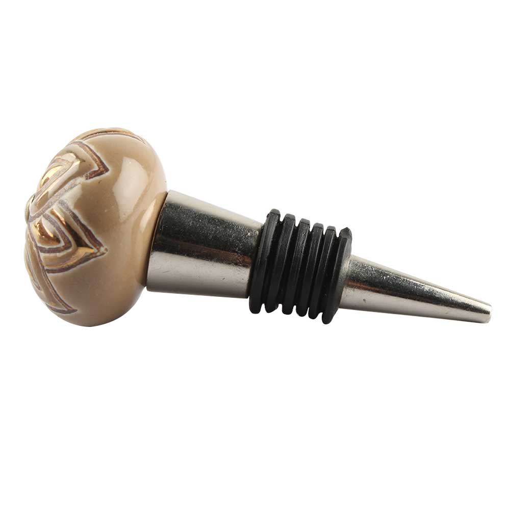 Golden Flower Ceramic Floral Wine Stopper. Zinc Alloy Wine Bottle Stopper with Attractive Jute Bag Packaging.