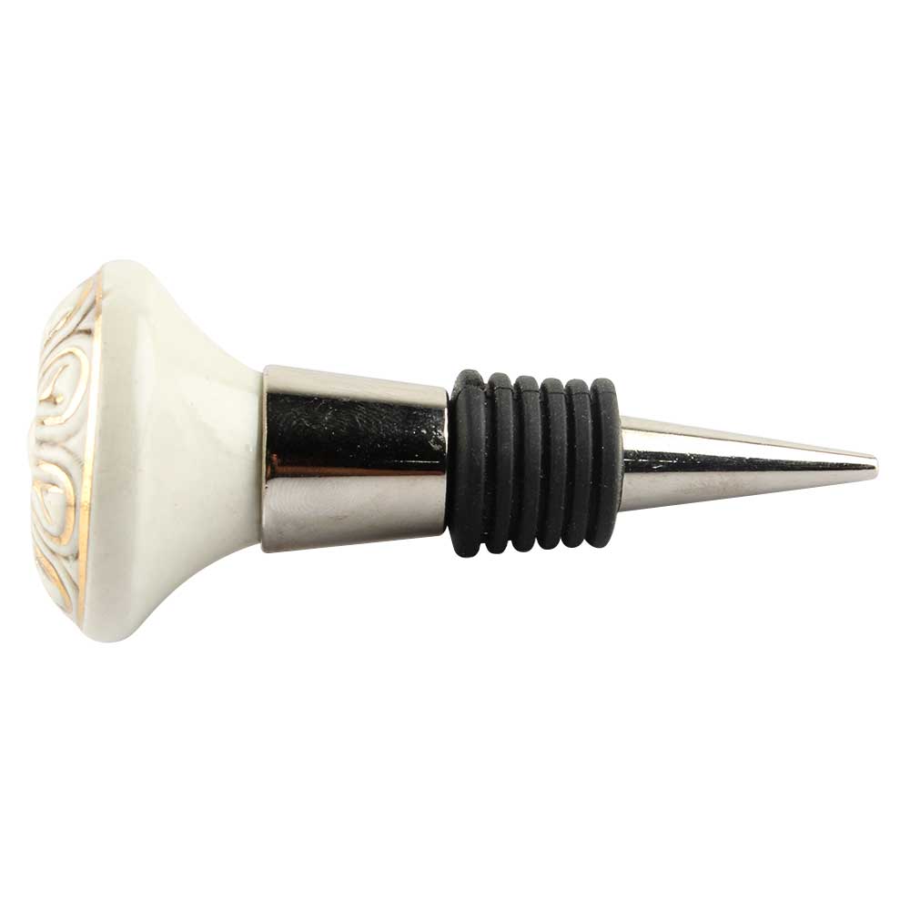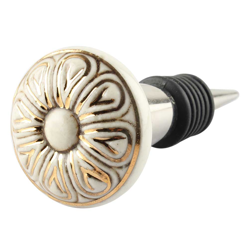 Golden Flower Ceramic Wine Stopper Online. Zinc Alloy Wine Bottle Stopper with Attractive Jute Bag Packaging.