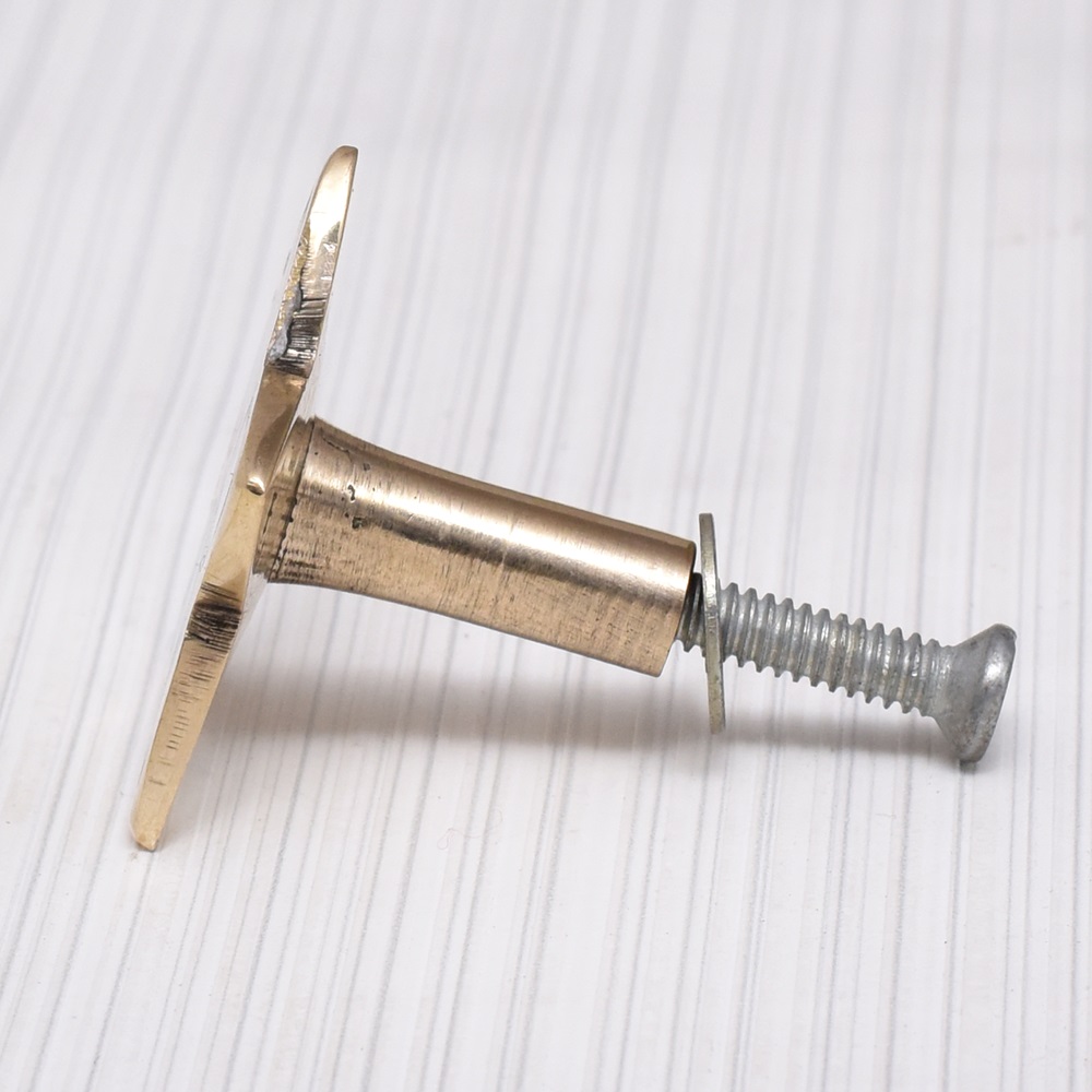Crafted with a stunning combination of mother of pearl and brass, the Golden Flower Dresser Knobs and Pulls offer both visual appeal and durability. The luminous sheen of the mother of pearl catches the light in a beautiful, iridescent glow, while the golden flower motif adds a bold yet refined contrast. This fusion of materials creates a lasting impression, elevating any piece of furniture into a functional work of art.