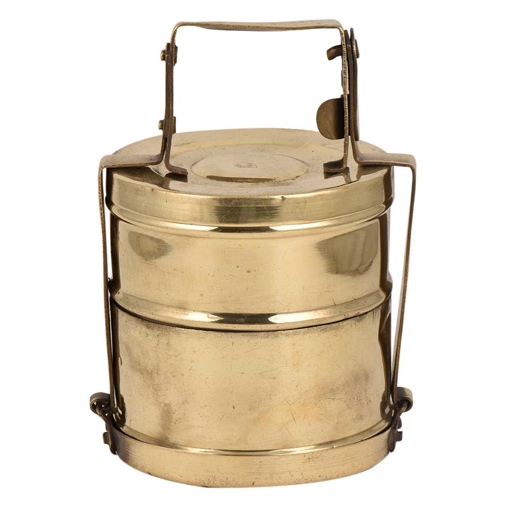 • Golden Framed Brass Tiffin Box With Two Storage Box