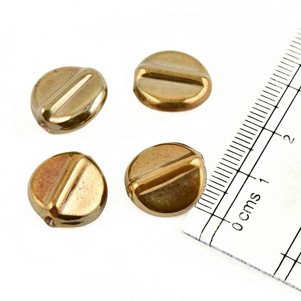 Golden Green Round Glass Beads For Jewelry Making And Home Decoration (Pack Of 12)