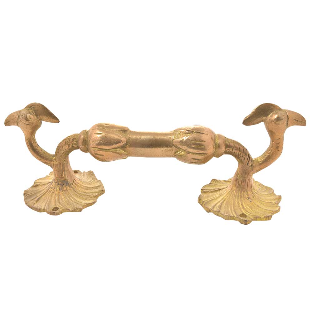 Hand Casted in Solid Brass, this Pair of Vintage Peacock Door Handles with Peacocks are Simply Gorgeous crafted by Indian Artisans from North India with an Intricate Floral Design on the Base and Carvings on the Handles, these Exquisite Door Handles Shall Adorn Any Door of Your House to Give them a Regal Look. Ideal for Drawer, Dresser, Cabinet, Wardrobe, Cupboard and Almirah.