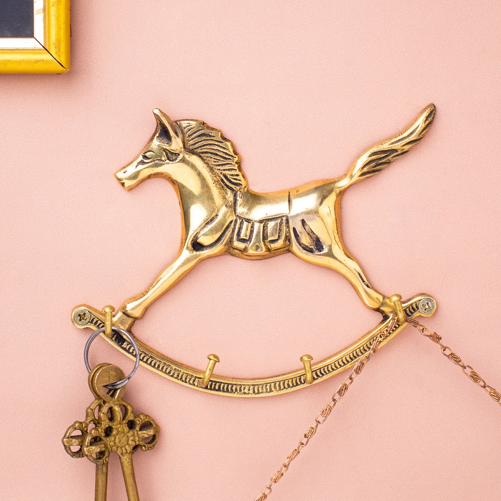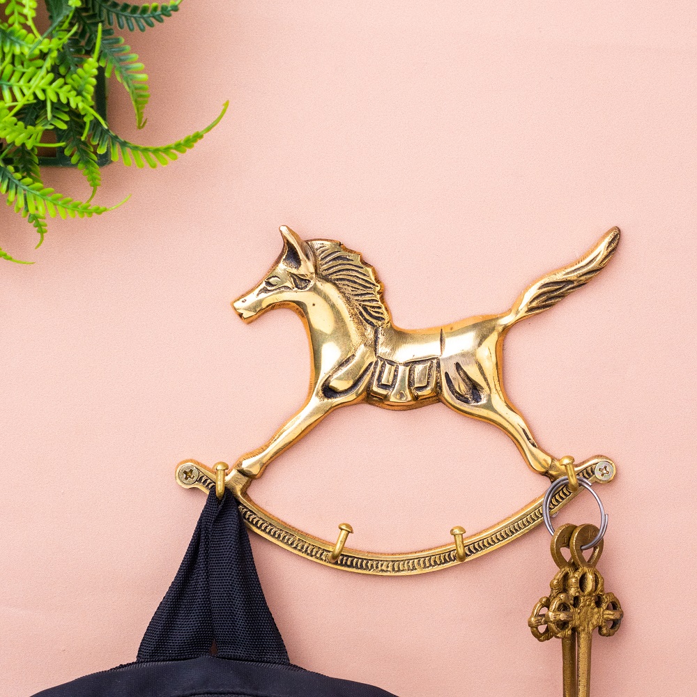 • Golden Horse Wall Hanging Brass Hooks