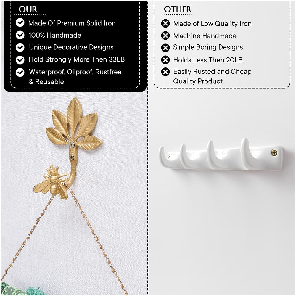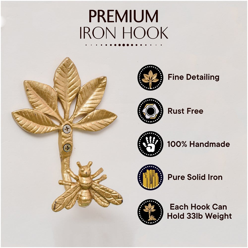 The Golden Iron Bee Wall Hook is more than just a functional piece—it's a statement of charm and creativity. Handcrafted from solid iron and finished in a radiant gold tone, this bee-shaped hook adds a playful yet elegant touch to your walls. Designed for both utility and décor, it helps you organize coats, bags, keys, or accessories while bringing nature-inspired beauty into your living space.
