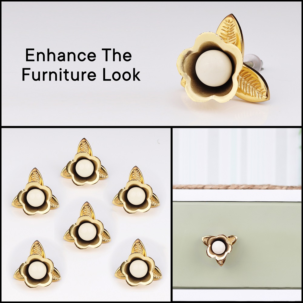 These cabinet knobs are not just functional but serve as statement pieces for any room in your home. Whether it's for a new furniture piece or a refurbishment project, the Golden Iron White Ceramic Bloom Cabinet Knobs will add an air of elegance and style to your interiors.