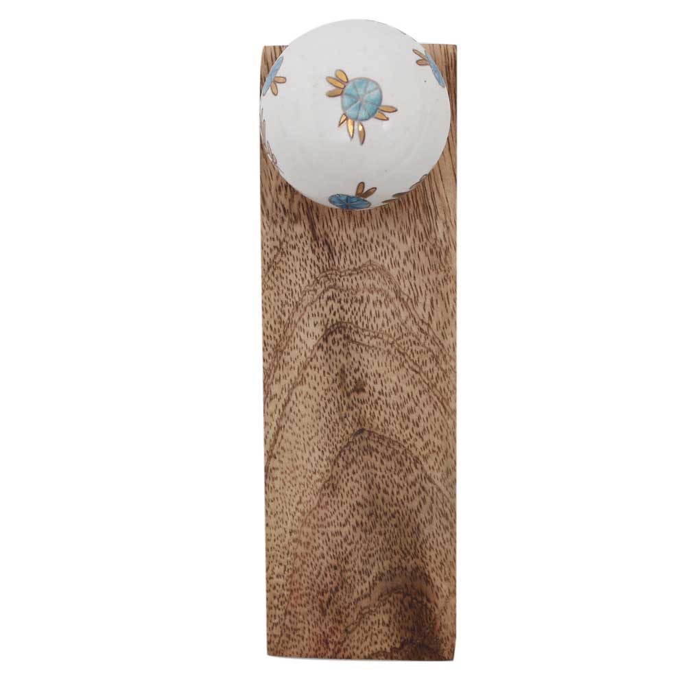 About the Product Handmade Ceramic Wooden Door Stopper.Wooden Door Stopper with a Ceramic Knob to Carry it Easily. This Wooden Door Stopper has Glue Dots under it to Ensure that it does not Slip. It is Handmade by the Craftsmen of India and this Innovative Door Stopper won't Disappoint You. Why Choose Our Product? 100% Handmade in India Premium Quality Hardware, Rust Free and Long Lasting Kids Friendly, No Sharp Edges on Corners All Hardware is Included, No Additional Hardware is Required Product Specification Pack of 1 Piece As it Appears