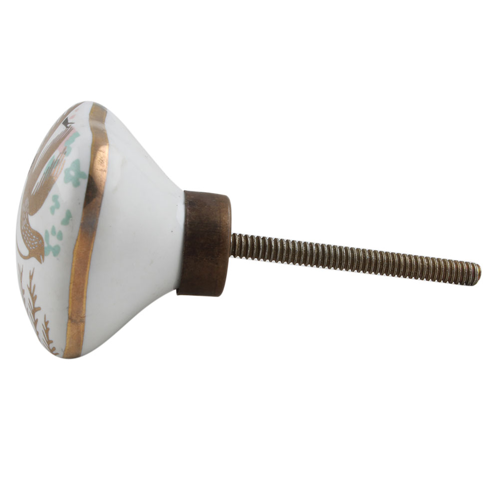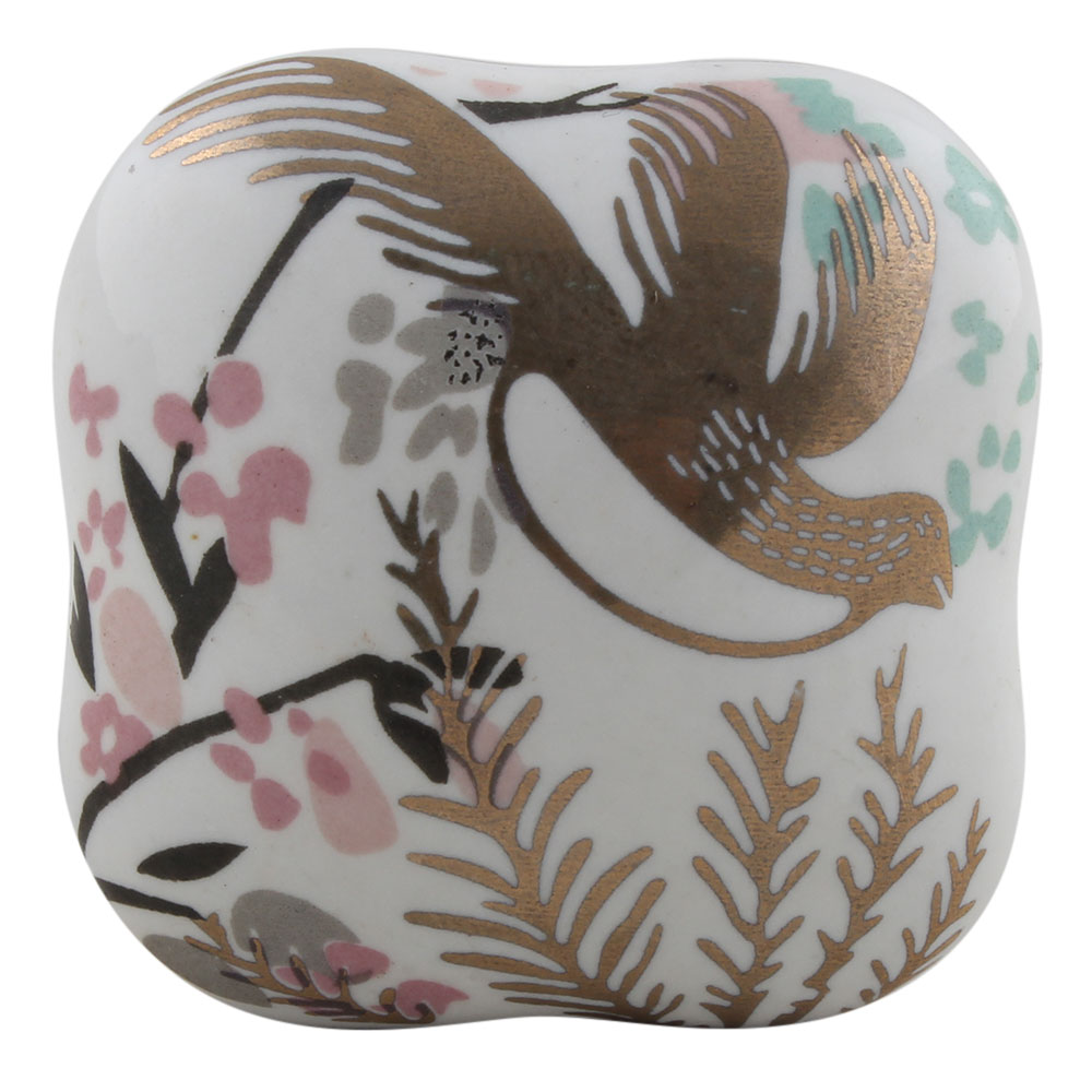 Golden Leaf Bird Square Ceramic Cabinet Knob