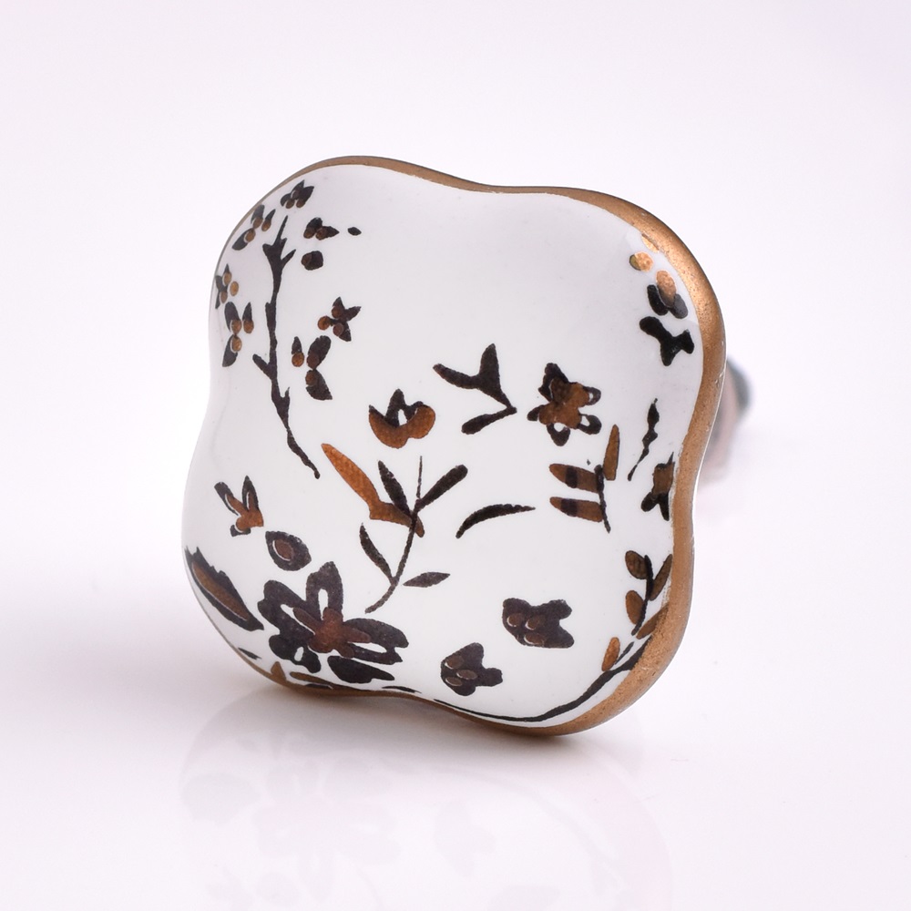 The intricate golden leaf and flower design on the ceramic knob infuses a touch of nature-inspired elegance into your furniture. Its detailed craftsmanship creates a striking contrast against the neutral ceramic base, making it a standout addition to both classic and contemporary settings.