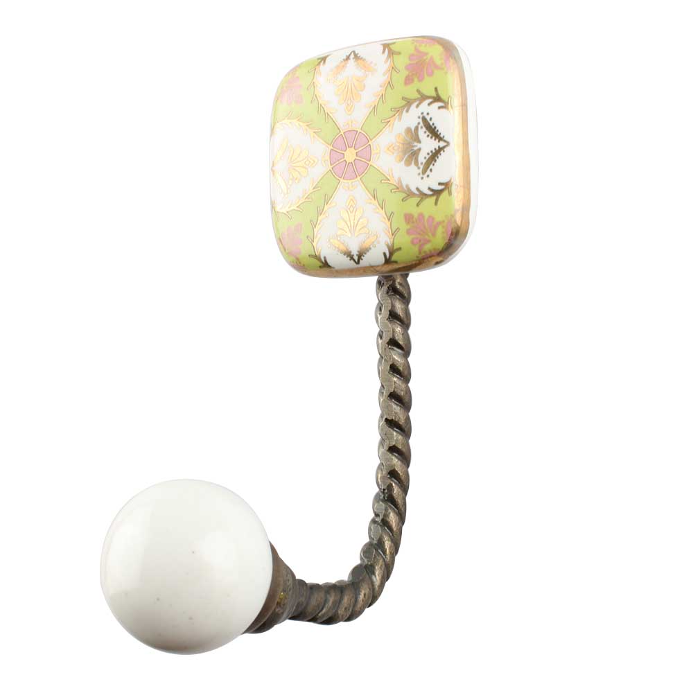 The Golden Leaf Flower Square Ceramic Iron Wall Hook in Antique Fitting is a beautifully handcrafted accent that blends artistic detail with industrial strength. Featuring a square ceramic tile with a golden leaf and floral pattern, this hook is finished with a classic antique-style iron fitting that adds a touch of vintage charm. Every detail—from the glazed ceramic art to the sturdy iron hook—is designed to elevate your décor while providing reliable utility. It’s perfect for those who appreciate design that’s both elegant and purposeful.