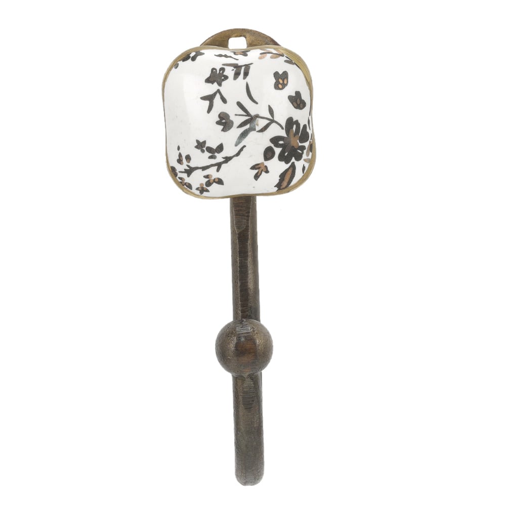 Material: Glazed Ceramic Tile with Antique-Finish Metal Hook