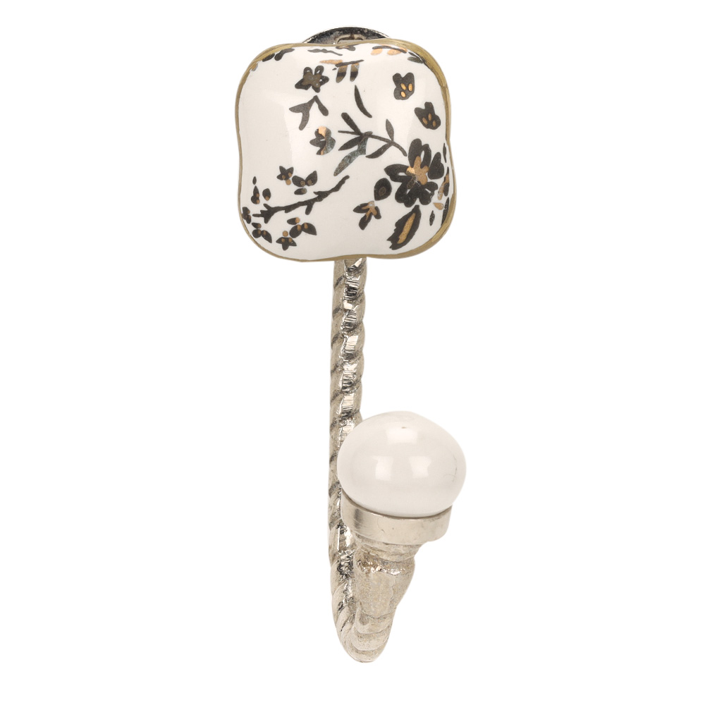 Elevate your home’s charm and organization with the Golden Leaf Flower Square Ceramic Metal Hook – Silver Fitting. This exquisite wall hook features a hand-glazed ceramic tile adorned with a delicate golden leaf and flower motif, set in a sturdy silver-finished metal hook. Designed for both beauty and utility, it’s a stylish solution for hanging everyday items while adding a touch of sophistication to any wall, from entryways to dressing areas.