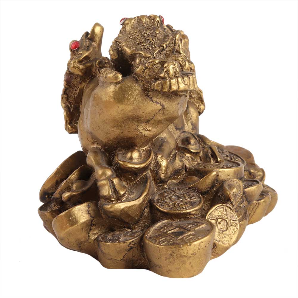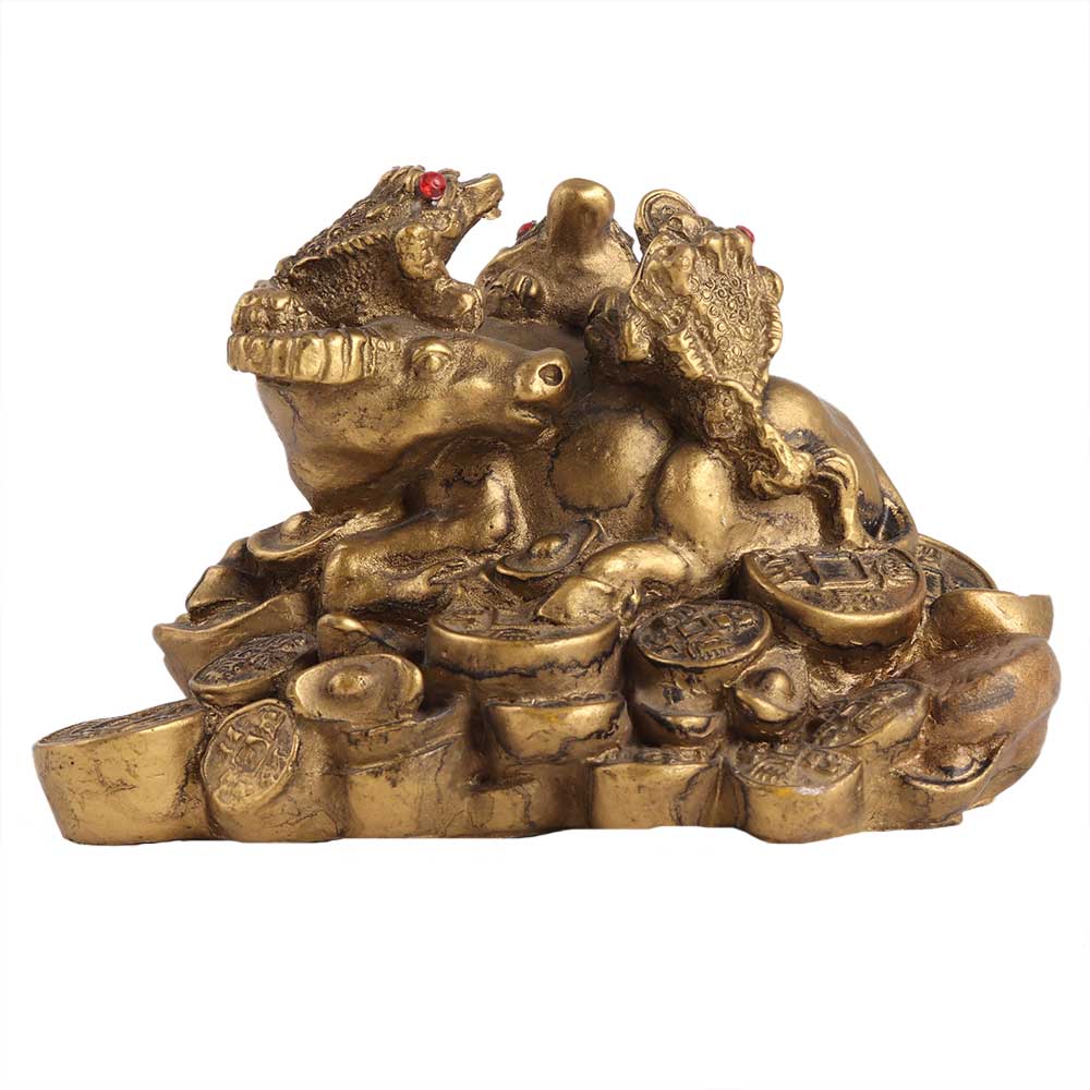 Golden Lucky Buffalo And Frog Statue Made Of Fish Bone