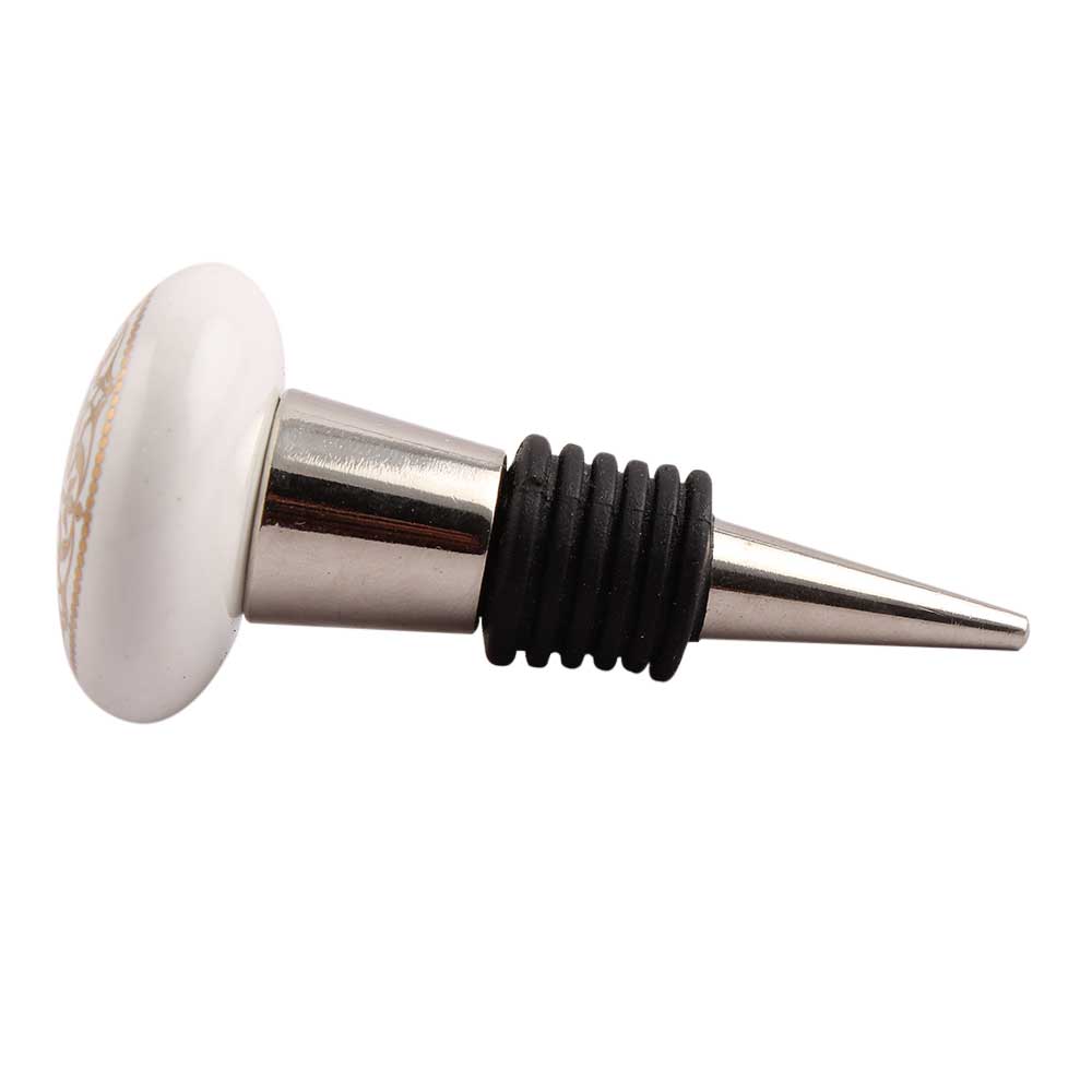Golden Rangoli Pattern Flat Ceramic Wine Stopper.zinc alloy wine bottle stopper with attractive Jute Bag Packaging.