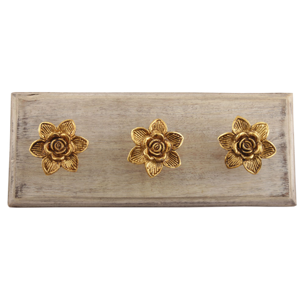 Golden Rose Flower Metal Wooden Hooks