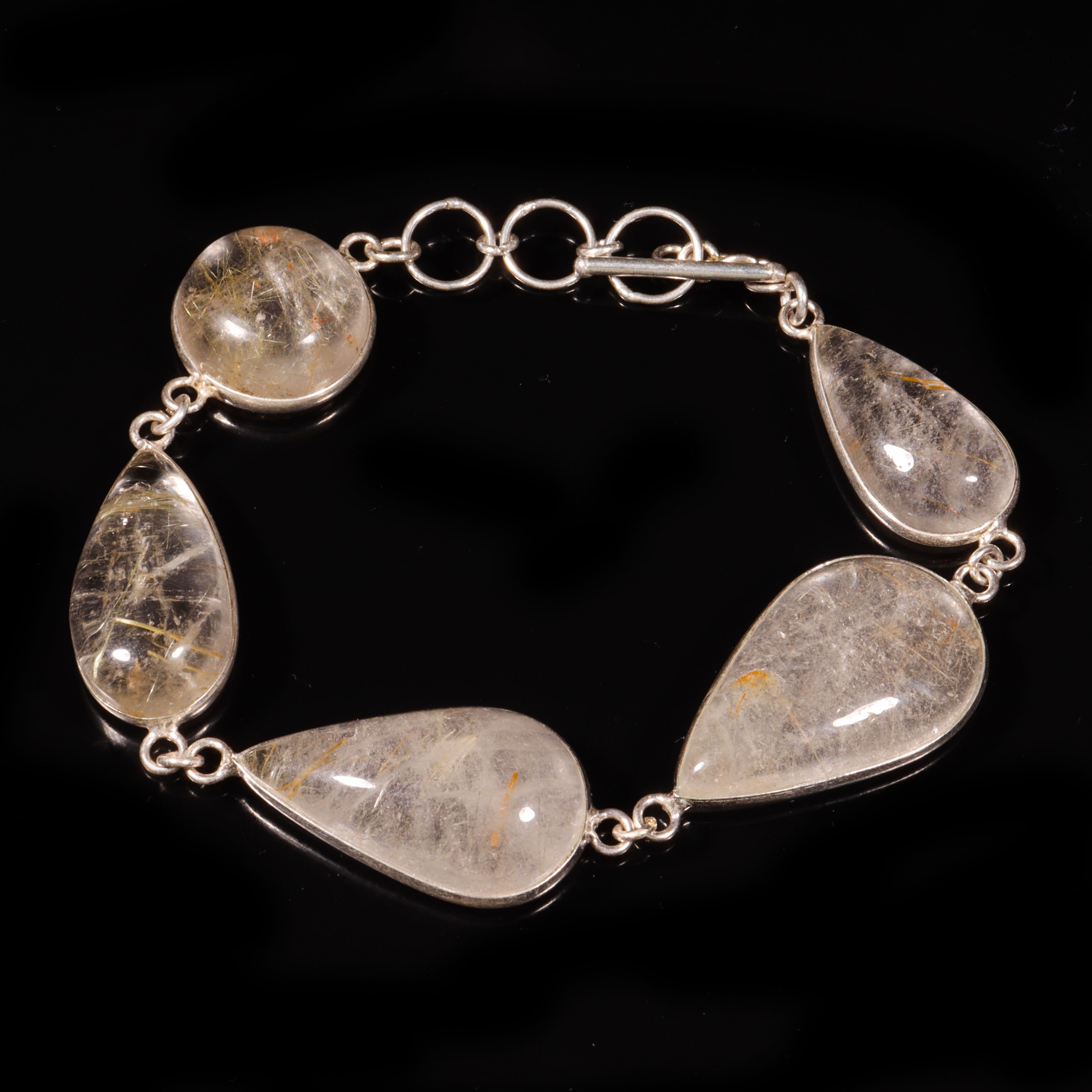 Golden Rutile stone bracelet for women, Brass silver plated bracelet for women, handmade jewelry