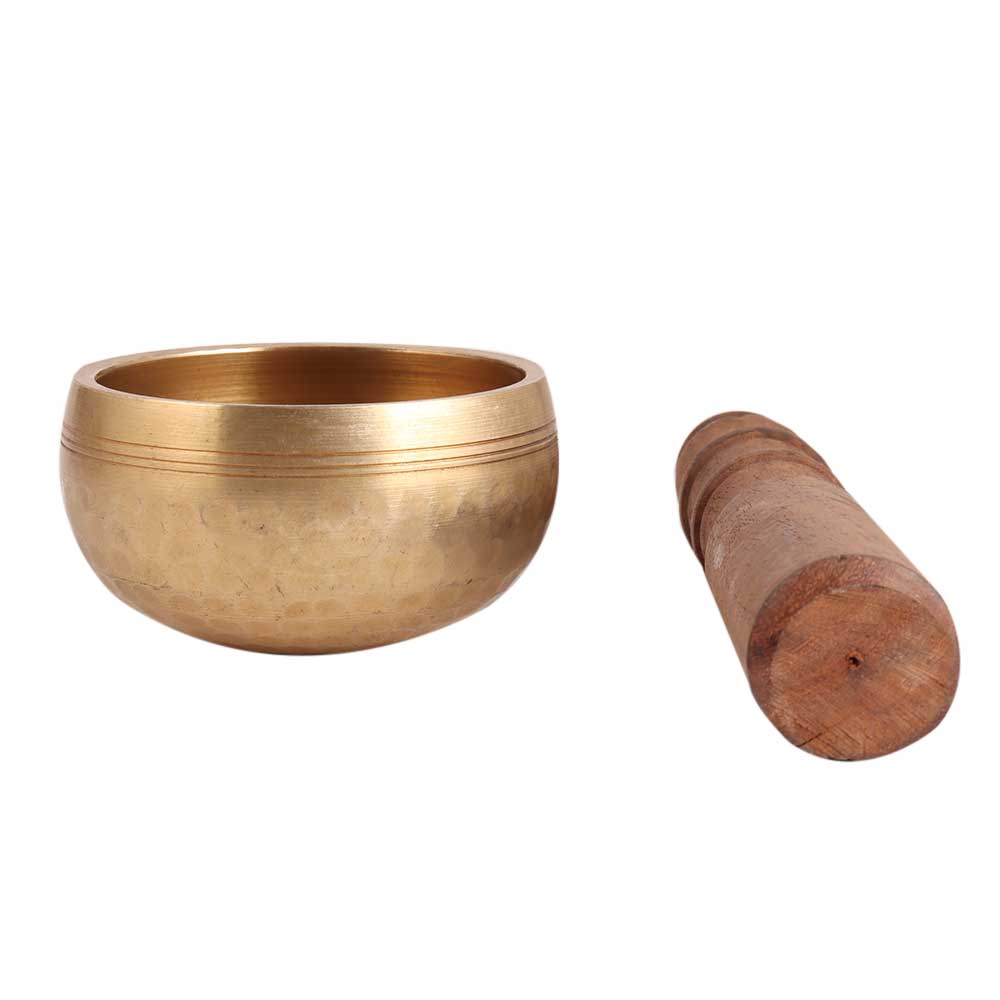 By rimming the brass Tibetan Singing Bowl from Nepal, you can bring sound healing therapy into your own space and emit deep, rich vibrations. Singing bowls have been used as part of meditative practices for centuries and are known to help promote deep relaxation and stress reduction. Lasting and powerful sound. This handcrafted bowl is ideal for meditation. Tibetan Singing Bowls naturally stimulate chakra self-correction. The sound waves, in the form of sine waves, send correcting frequencies to the out-of-balance chakras, restoring them to normal operation.