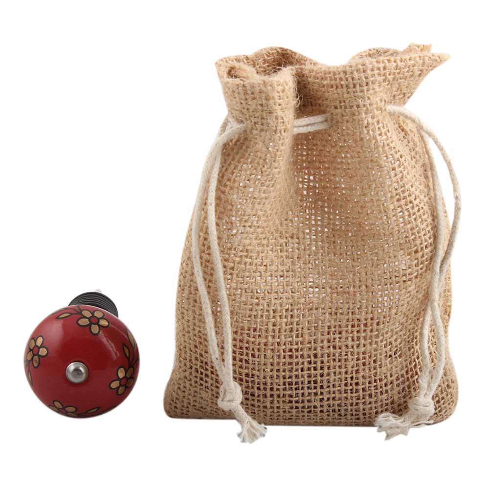 Golden Tiny Flower Ceramic Wine Stopper.zinc alloy wine bottle stopper with attractive Jute Bag Packaging.