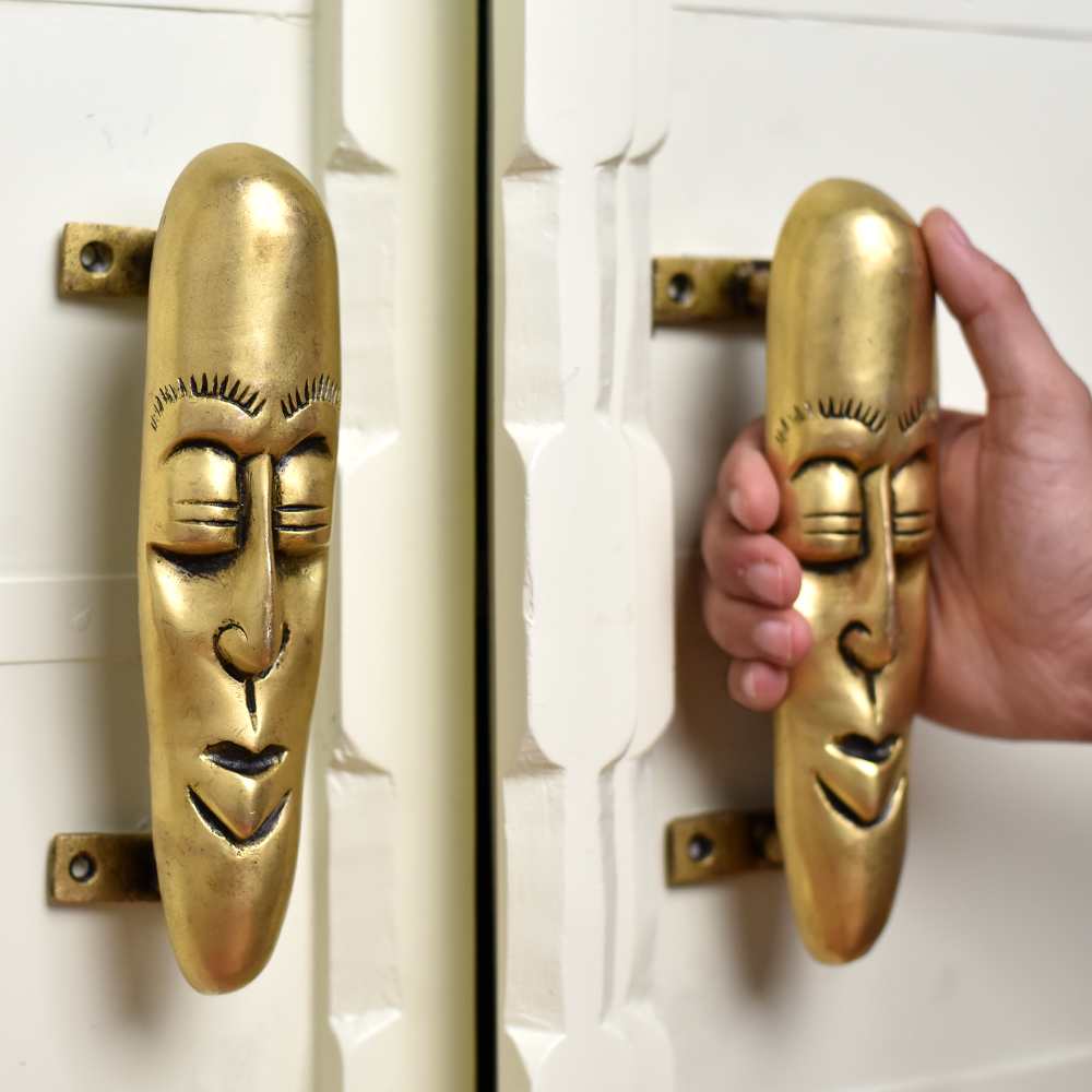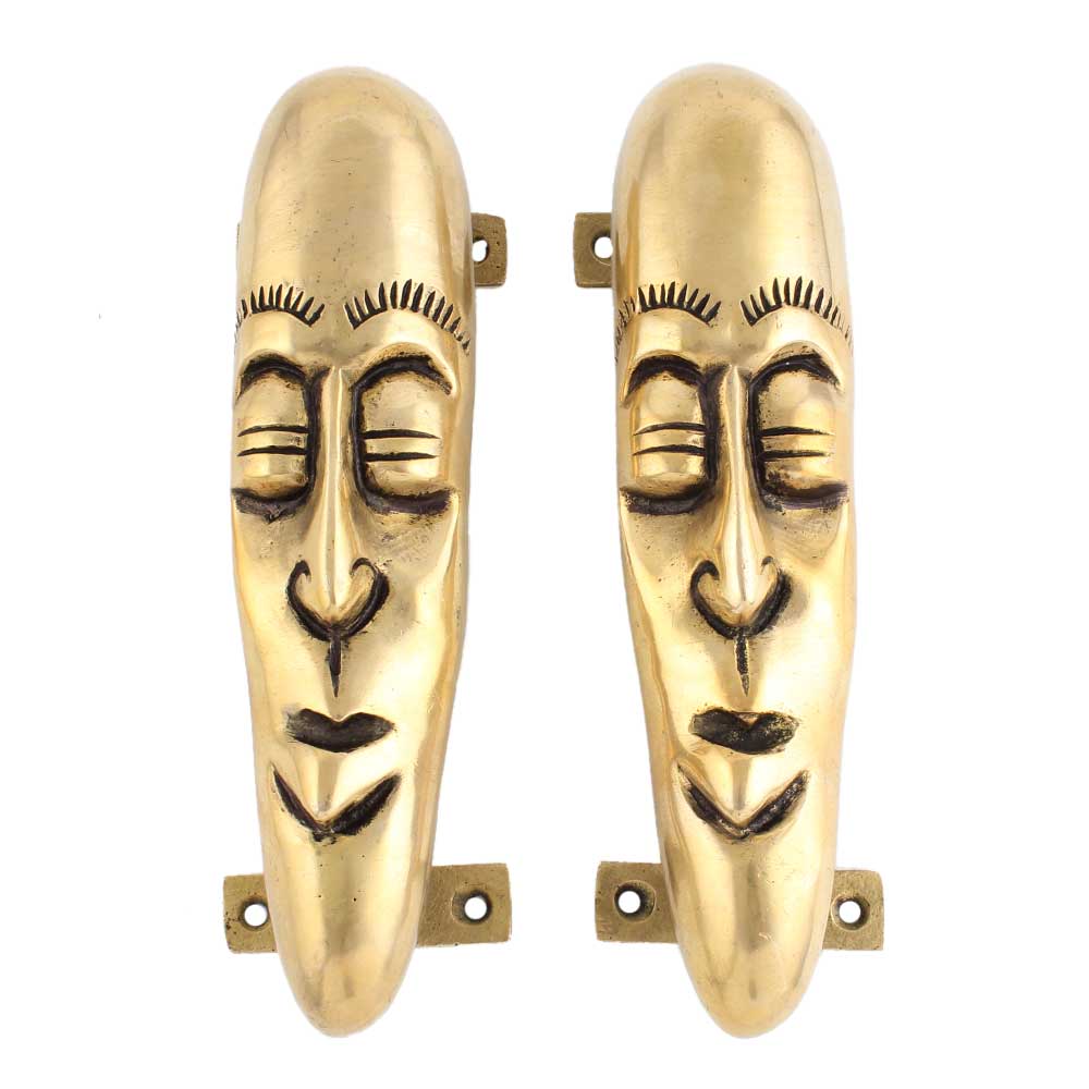 With a design that embodies the spirit of tribal culture, these handles are not only functional but also serve as an intricate art piece. The golden finish enhances the beauty of the detailed face design, making these handles stand out as a distinctive feature in any room, office, or entryway.