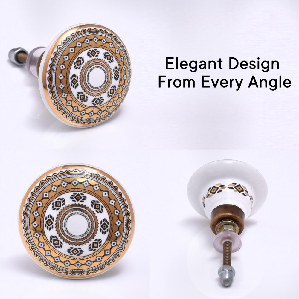 The Golden Wheel Pattern Flat Ceramic Cabinet Knob - Pack of 6 adds a touch of sophistication and charm to any piece of furniture. Featuring a stunning golden wheel pattern etched onto the flat ceramic surface, these knobs offer a refined and elegant look for cabinets, dressers, drawers, and more. Whether you’re renovating your kitchen, bathroom, or bedroom, these knobs provide a sleek, modern touch that enhances any décor style. The luxurious gold accents and smooth ceramic finish make these knobs a perfect blend of beauty and functionality.