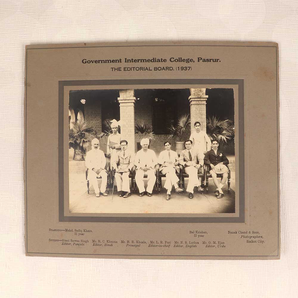 Bring the nostalgia of yesteryear into your home with this stunning vintage paper photograph of “Government Intermediate College, Pasrur.” This breathtaking image immediately transports you back to 1937, when the editorial board of this prestigious institution posed for an iconic group portrait. See the smartly dressed men who made up the editorial board at Government Intermediate College in Pasrur, a town in the Punjab province. Their classic attire and stoic poses capture the formality of the era. As an editorial board, these men shaped the voice of their academic community through student publications. With each glance, you’ll feel transported back to 1937 and the halls of this prestigious learning institution.