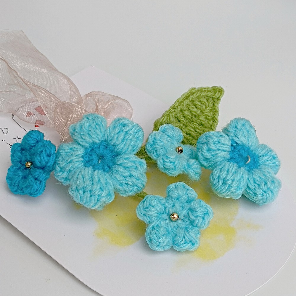 Gradient Blue Crochet Flowers Blossoms Tulle