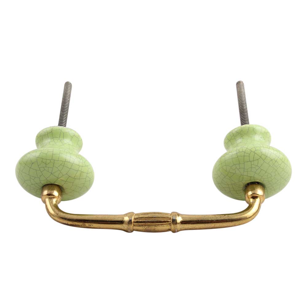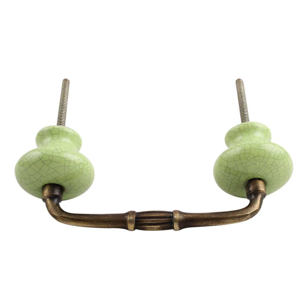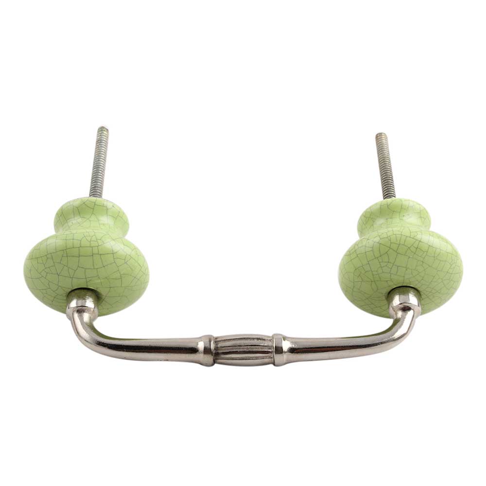 Green and Black Crackle Ceramic Bridge Handle. Ideal for Drawer, Dresser, Cabinet, Wardrobe, Cupboard and Almirah.
