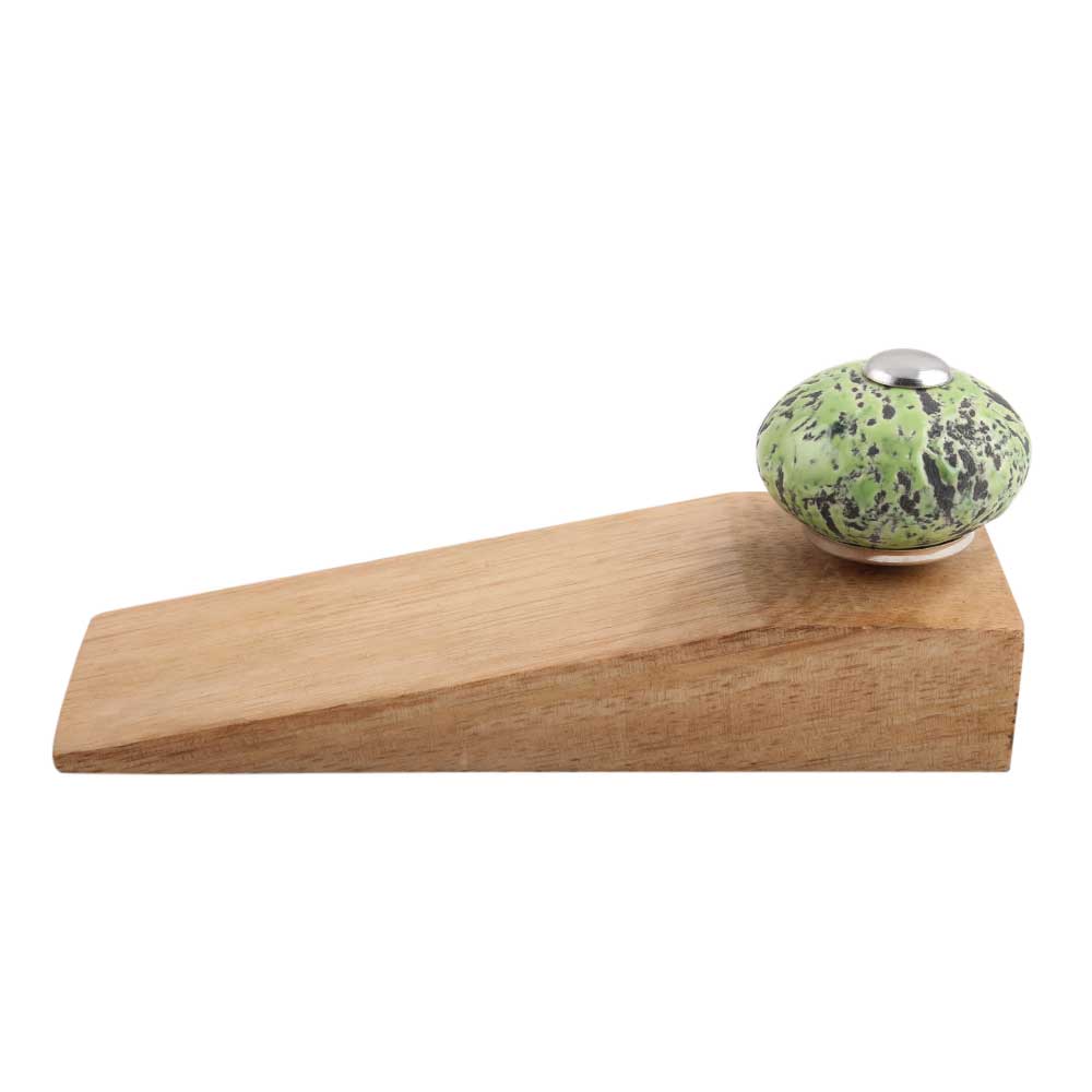 Handmade Ceramic and Wooden Door Stopper.Wooden Door Stopper with a Ceramic Knob to Carry it Easily. This Wooden Door Stopper has Glue Dots under it to Ensure that it does not Slip. It is Handmade by the Craftsmen of India and this Innovative Door Stopper won't Disappoint You.