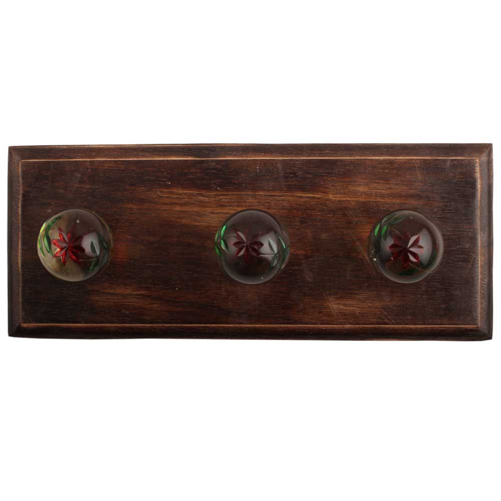 Green And Red Star Cut Glass Wooden Hook