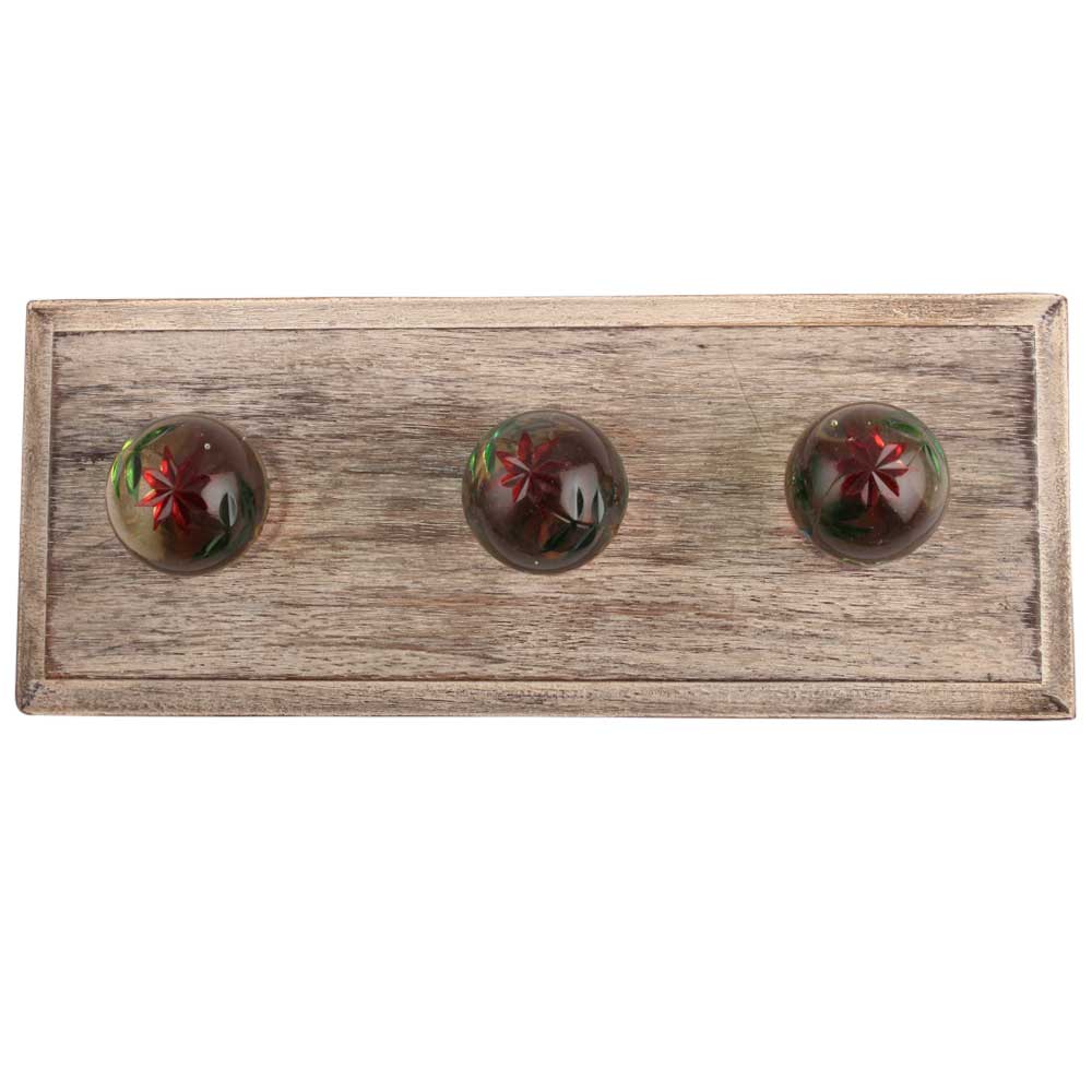 Green And Red Star Cut Glass Wooden Hook