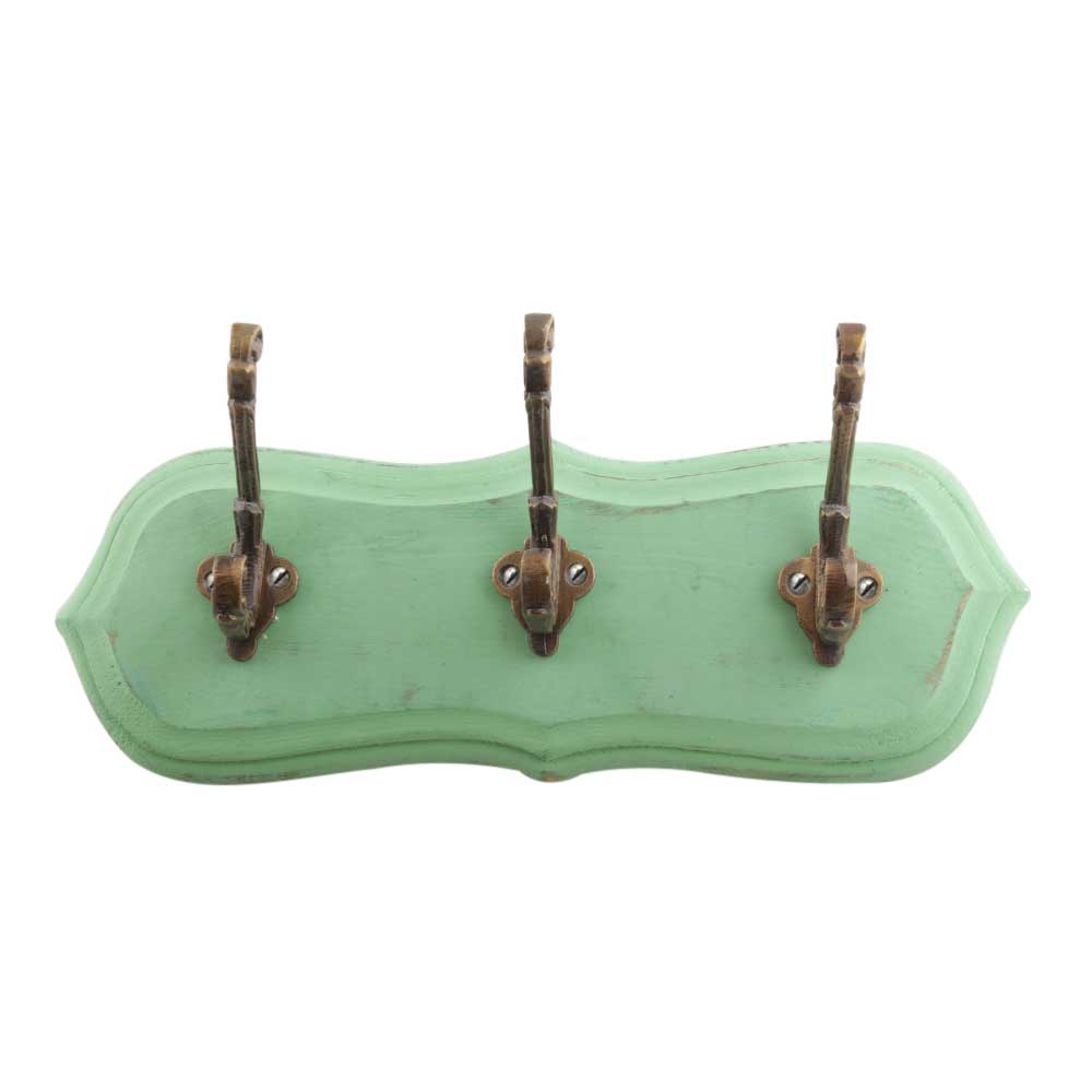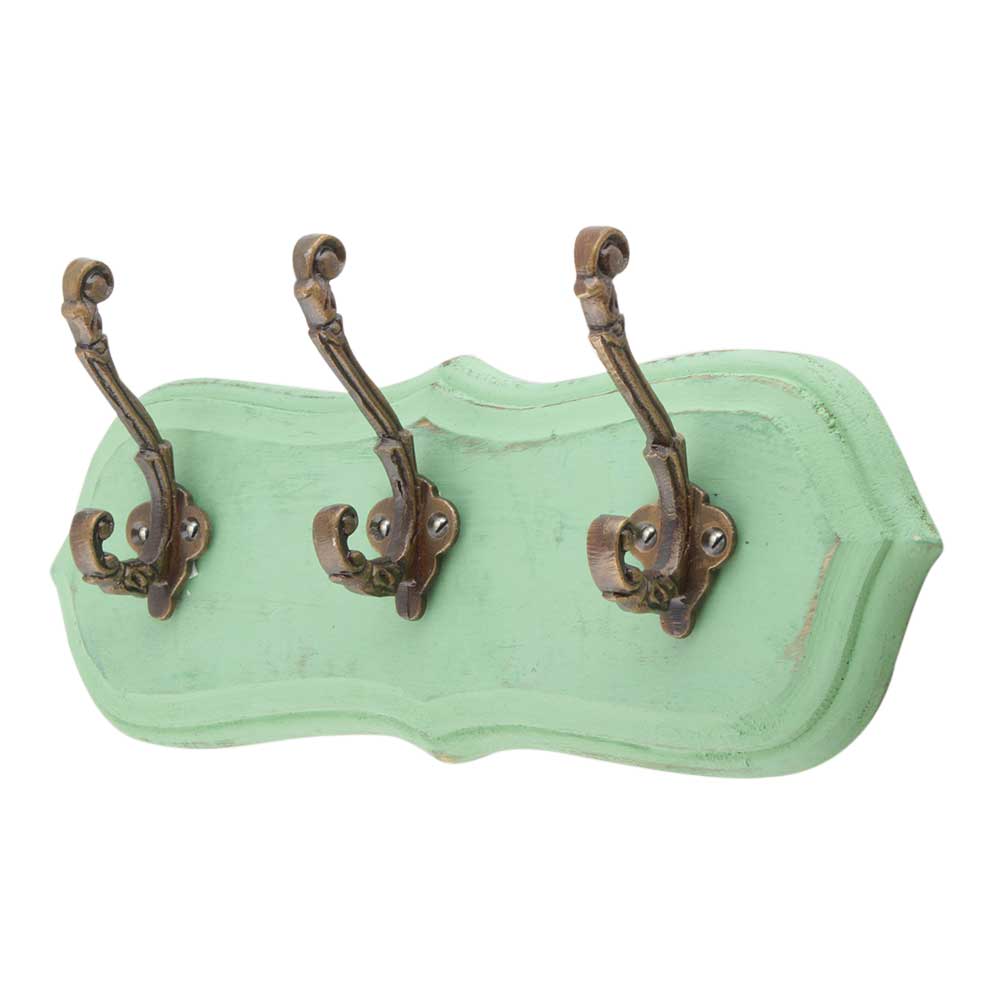 Green Antique Small Wall Wooden Iron Hooks