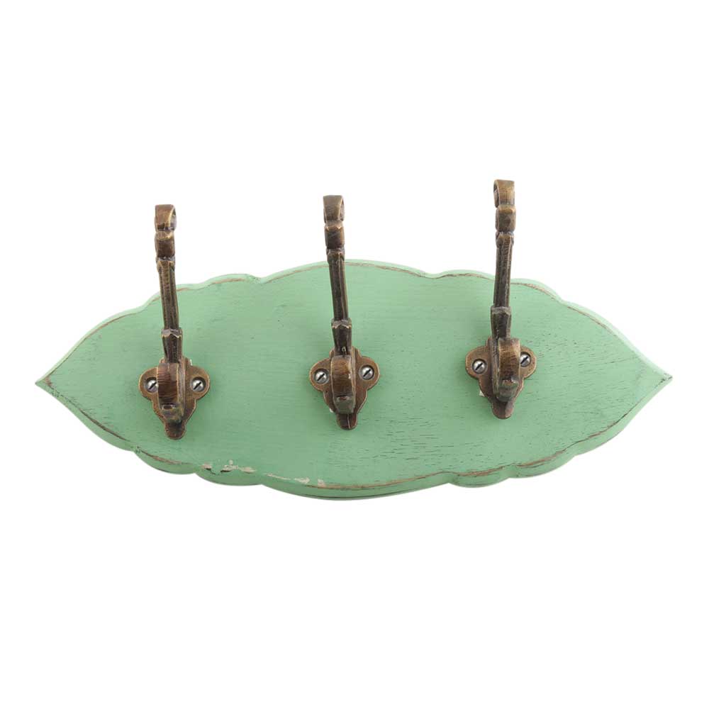 Green Antique Small Wall Wooden Iron Hooks. A Perfect Complement to the Soft Tone of the Wood are these White Traditional Hat & Coat Hook Made of Genuine Porcelain and Brass. It can be use to Hang Jewellery, Leashes, Towels, Scarves, Light Weight Sweaters, Caps Etc.