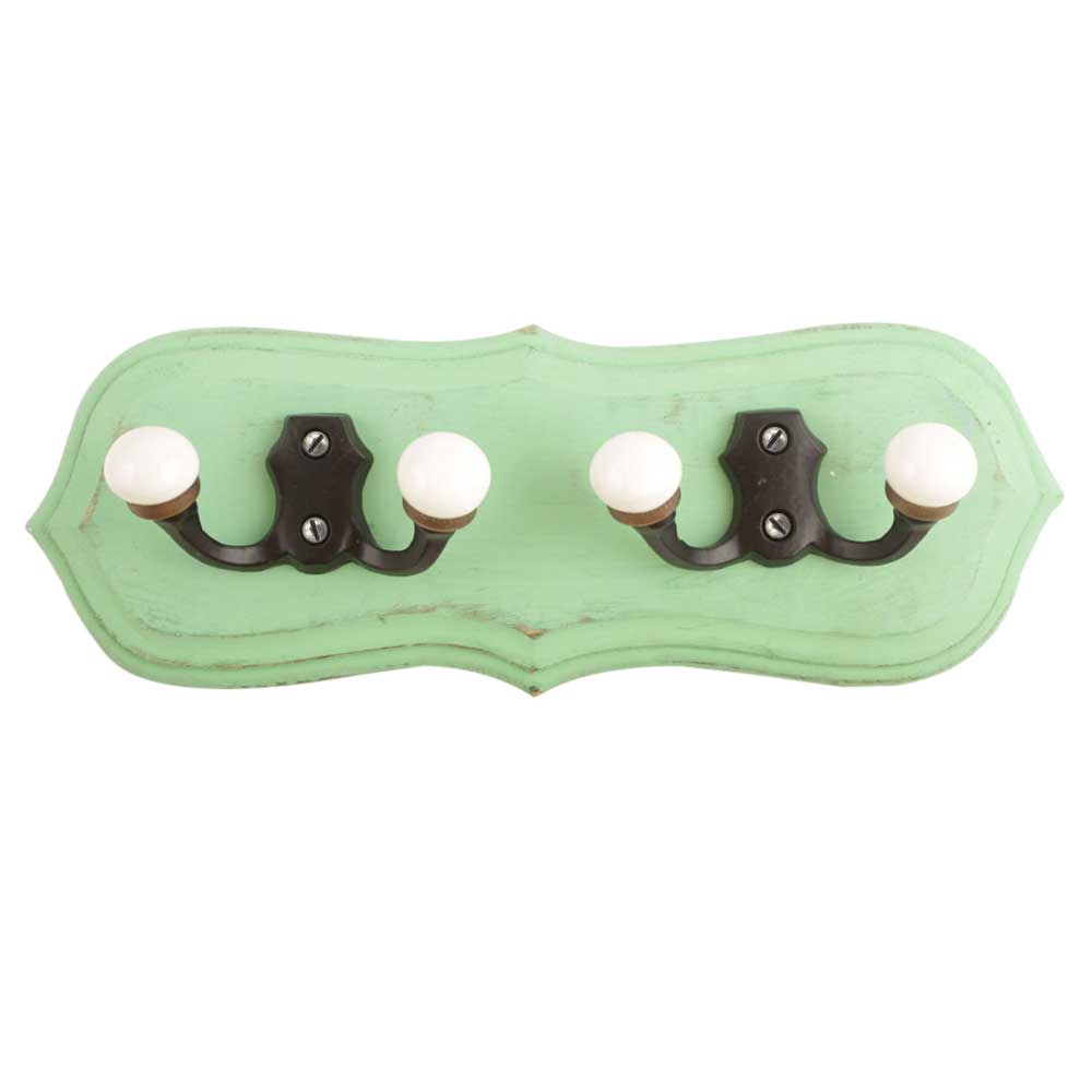 Green Black Double Loop Ceramic Iron Wooden Hooks. A Perfect Complement to the Soft Tone of the Wood are these White Traditional Hat & Coat Hook Made of Genuine Porcelain and Brass. It can be use to Hang Jewellery, Leashes, Towels, Scarves, Light Weight Sweaters, Caps Etc.
