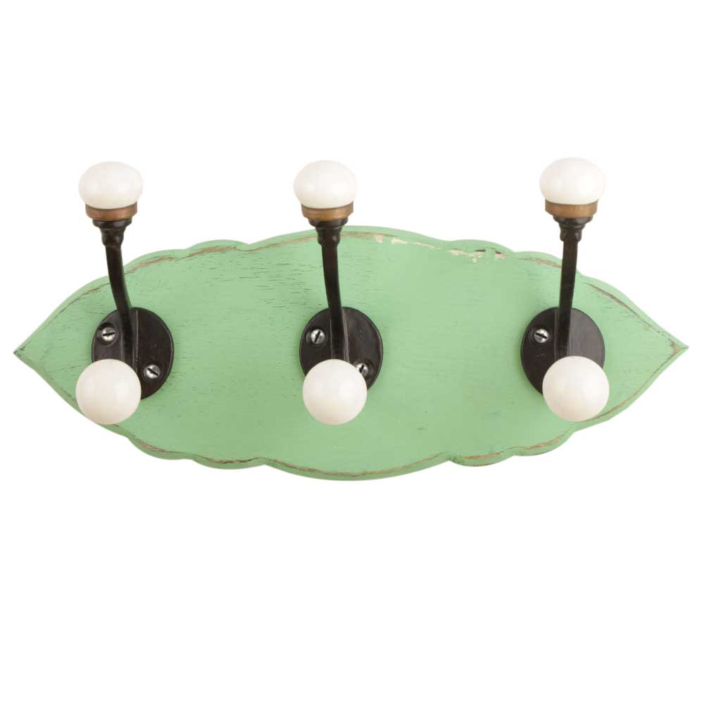 Green Black Double Loop Ceramic Iron Wooden Hooks. A Perfect Complement to the Soft Tone of the Wood are these White Traditional Hat & Coat Hook Made of Genuine Porcelain and Brass. It can be use to Hang Jewellery, Leashes, Towels, Scarves, Light Weight Sweaters, Caps Etc.