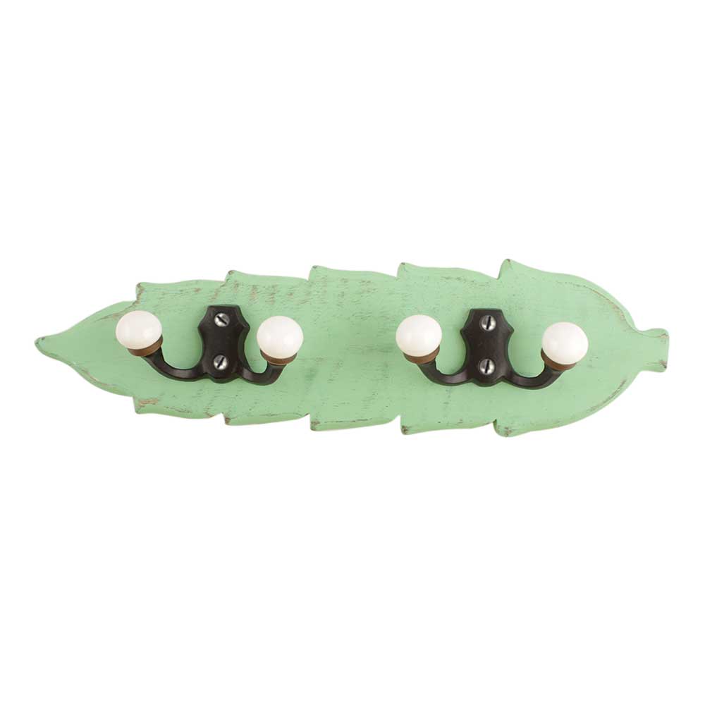 Green Black Double Loop Ceramic Iron Wooden Hooks. A Perfect Complement to the Soft Tone of the Wood are these White Traditional Hat & Coat Hook Made of Genuine Porcelain and Brass. It can be use to Hang Jewellery, Leashes, Towels, Scarves, Light Weight Sweaters, Caps Etc.