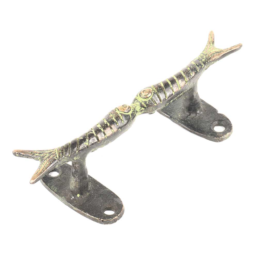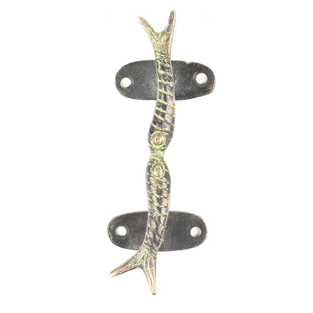Green Brass Door Handle Twin Fish