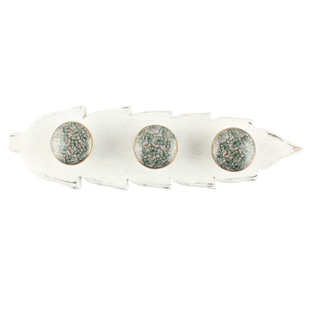 Finish: Glossy green ceramic butterflies on smooth matte white-painted wood