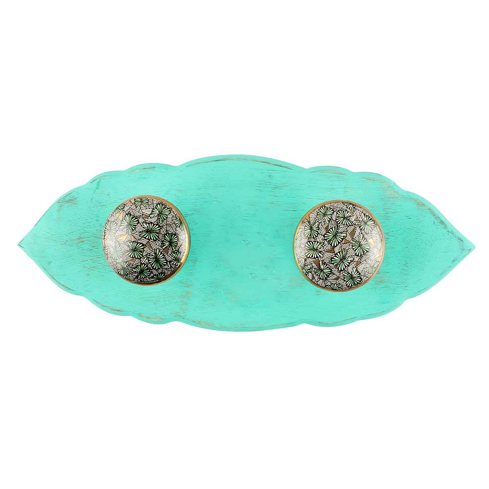 Finish: Glossy green ceramic with a matte turquoise-painted wooden mount