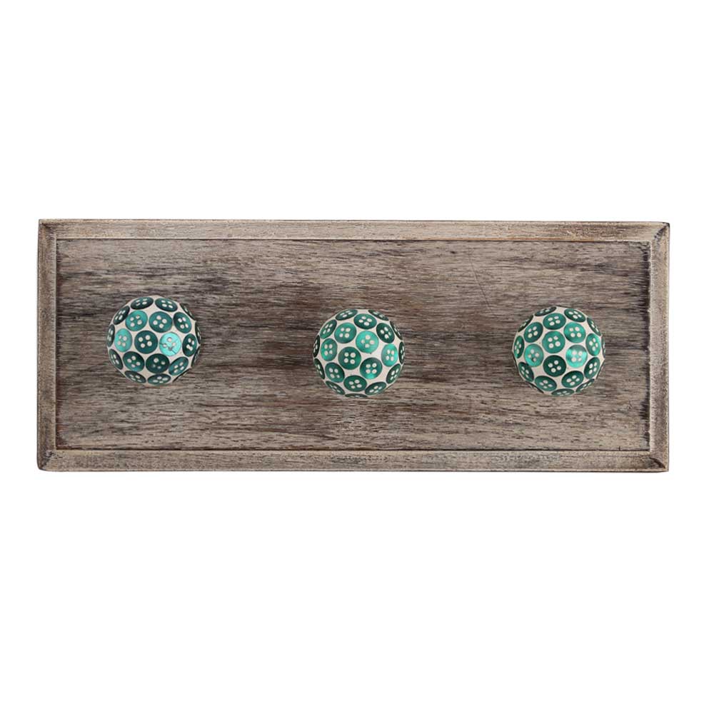 Green Button Wooden Hook. A Perfect Complement to the Soft Tone of the Wood are these White Traditional Hat Coat Hook Made of Genuine Porcelain and Brass. It can be use to Hang Jewellery, Leashes, Towels, Scarves, Light Weight Sweaters, Caps Etc.