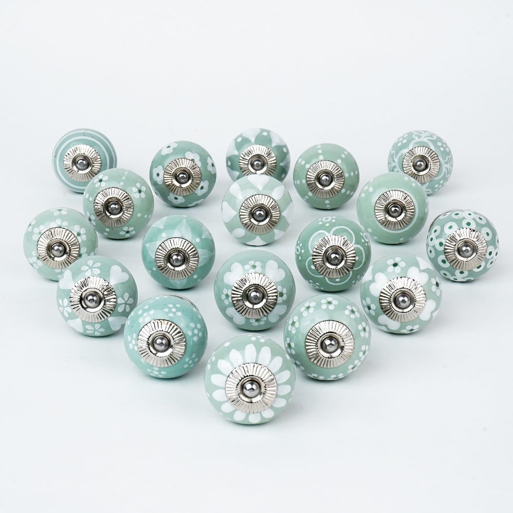 Green Ceramic Drawer Knobs Combo for Drawer (18 Pieces). Ideal for Drawer, Dresser, Cabinet, Wardrobe, Cupboard and almirah