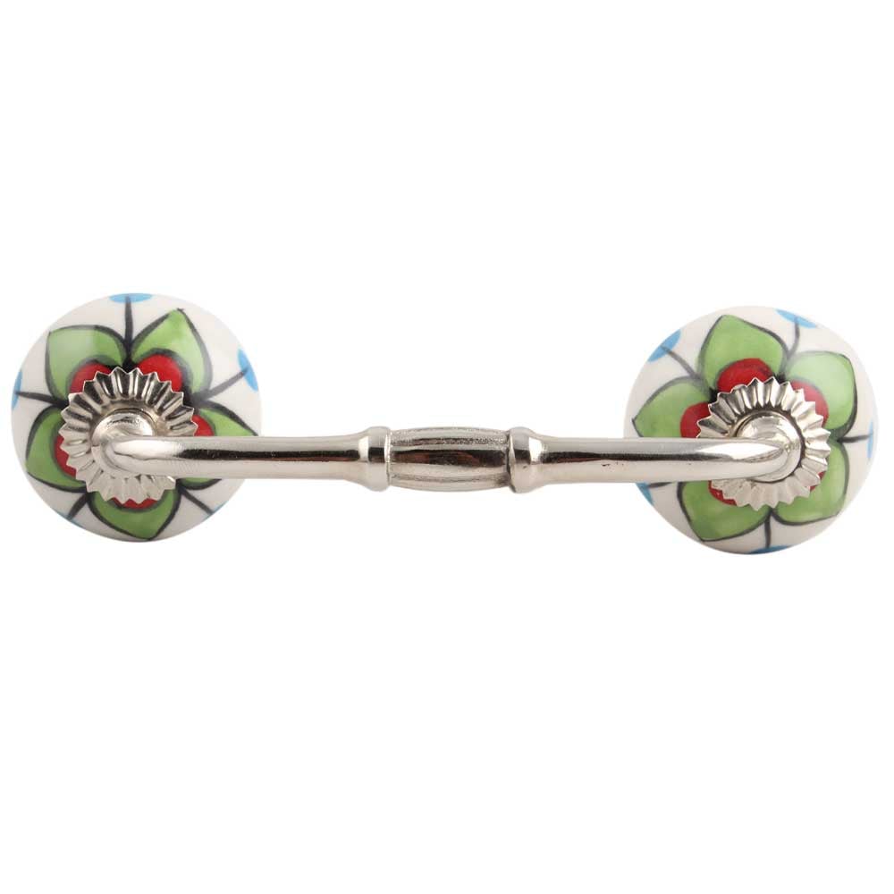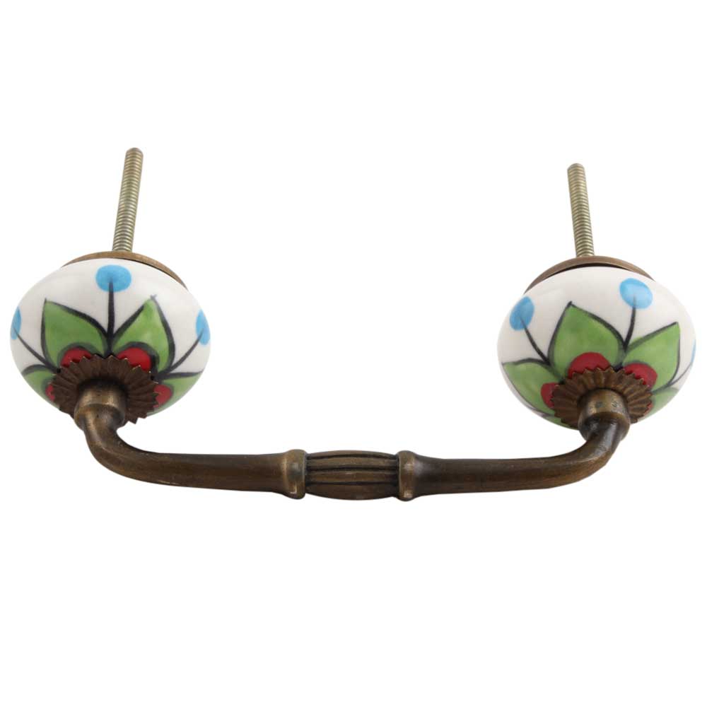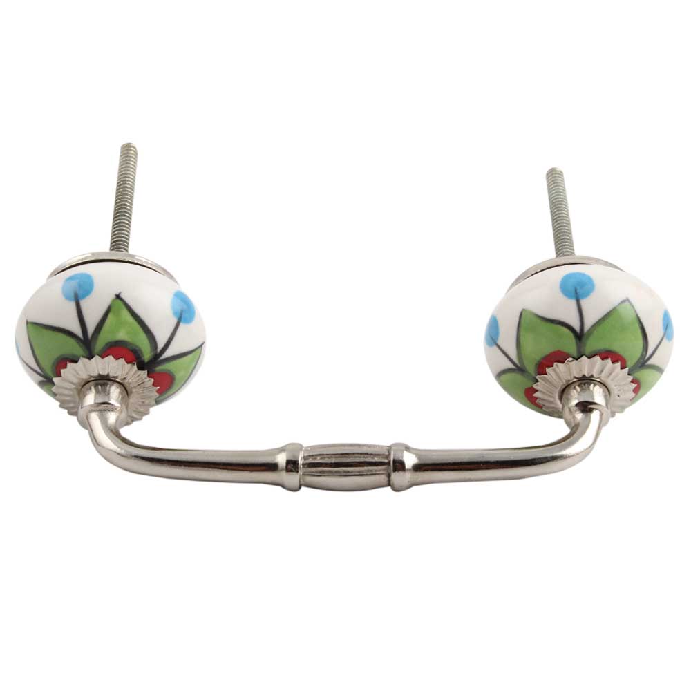 Green Clove Flower Ceramic Bridge Handle. Ideal for Drawer, Dresser, Cabinet, Wardrobe, Cupboard and Almirah.